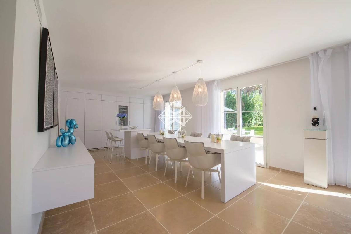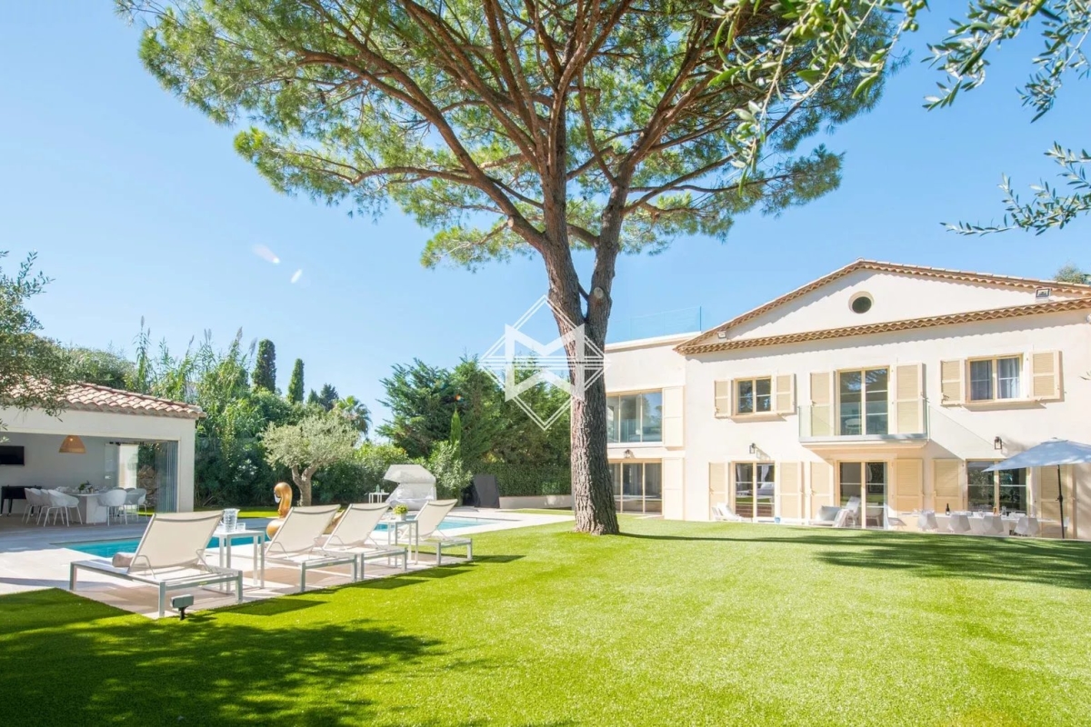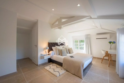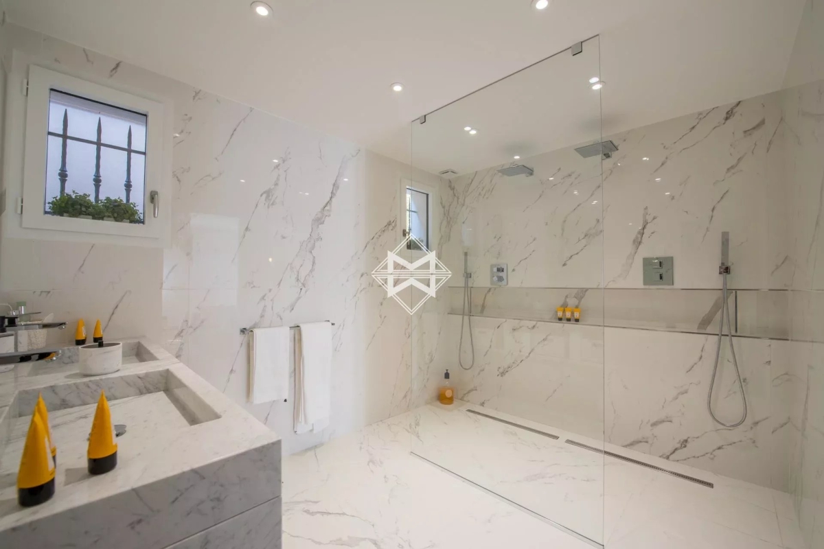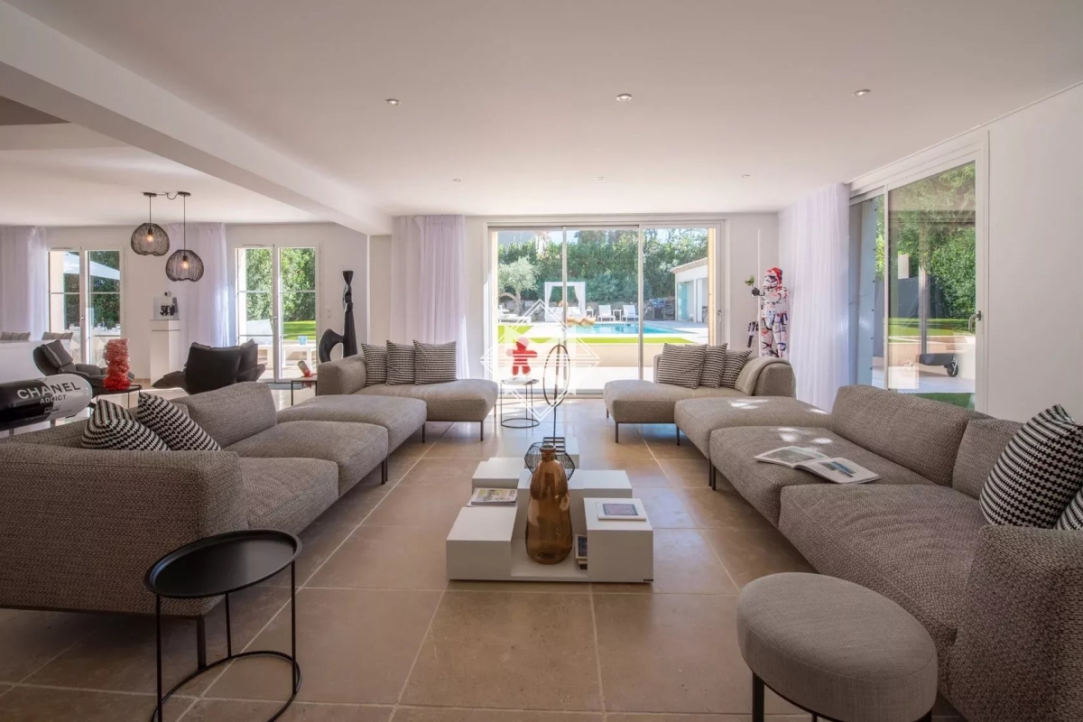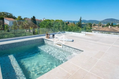 Ideally located a few steps from the famous Place des Lices in a quiet and secure area, a new villa of around 500 m2 on landscaped grounds of around 2,000 m2. It consists of an entrance opening onto a large living room, fitted kitchen, dining room, 8 bedrooms and a master bedroom with shower rooms, an office, a dressing room ... This villa will seduce you with its many facilities: gym, massage room, cinema room, heated swimming pool with equipped pool house (tv, air conditioning, kitchen) including a living / dining room, reception bar area, toilet and outdoor shower, outdoor lighting, alarm, video surveillance, automatic watering, air conditioning, parking for up to 10 vehicles. The charm asset: the master bedroom offers direct access to a rooftop with jacuzzi, panoramic view of the village of Saint Tropez, the port and the sea.