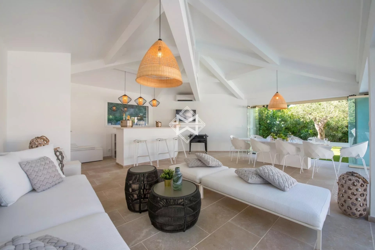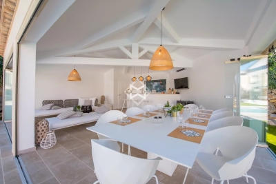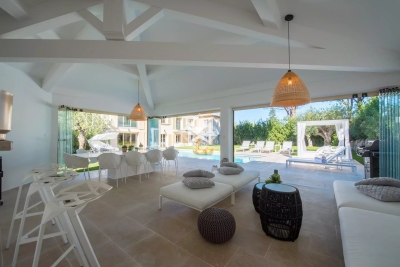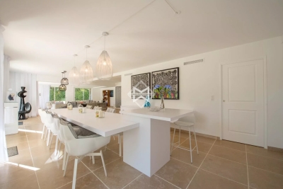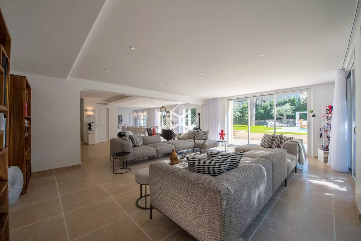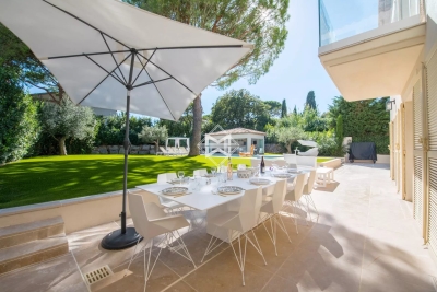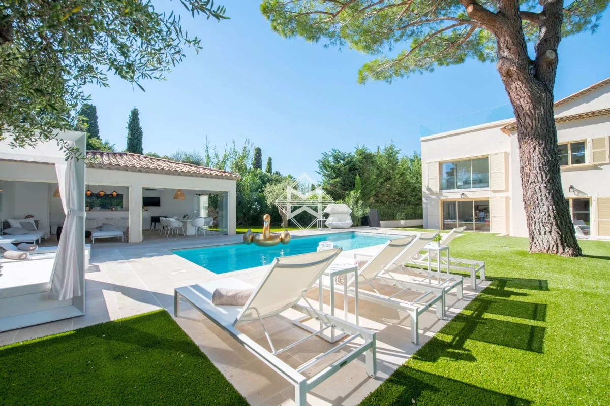 Ideally located a few steps from the famous Place des Lices in a quiet and secure area, a new villa of around 500 m2 on landscaped grounds of around 2,000 m2. It consists of an entrance opening onto a large living room, fitted kitchen, dining room, 8 bedrooms and a master bedroom with shower rooms, an office, a dressing room ... This villa will seduce you with its many facilities: gym, massage room, cinema room, heated swimming pool with equipped pool house (tv, air conditioning, kitchen) including a living / dining room, reception bar area, toilet and outdoor shower, outdoor lighting, alarm, video surveillance, automatic watering, air conditioning, parking for up to 10 vehicles. The charm asset: the master bedroom offers direct access to a rooftop with jacuzzi, panoramic view of the village of Saint Tropez, the port and the sea.
