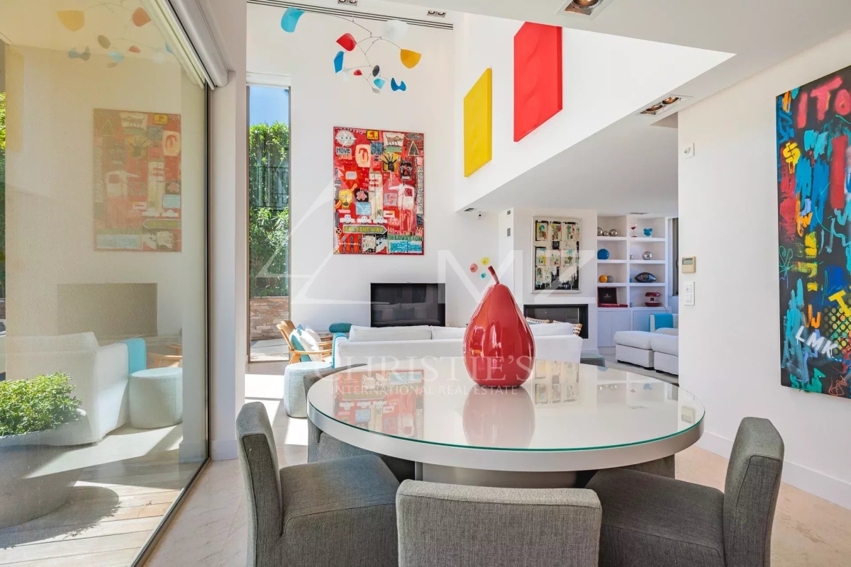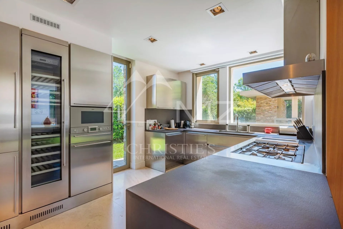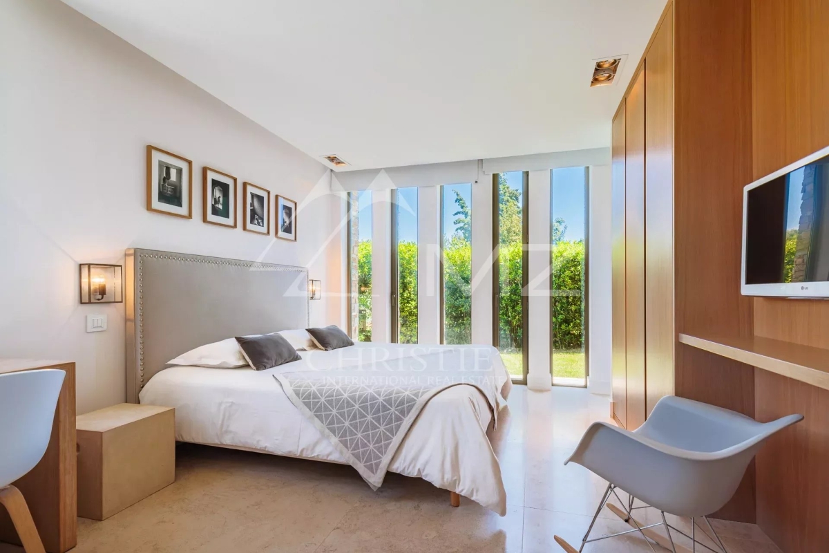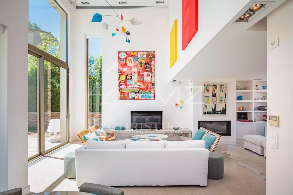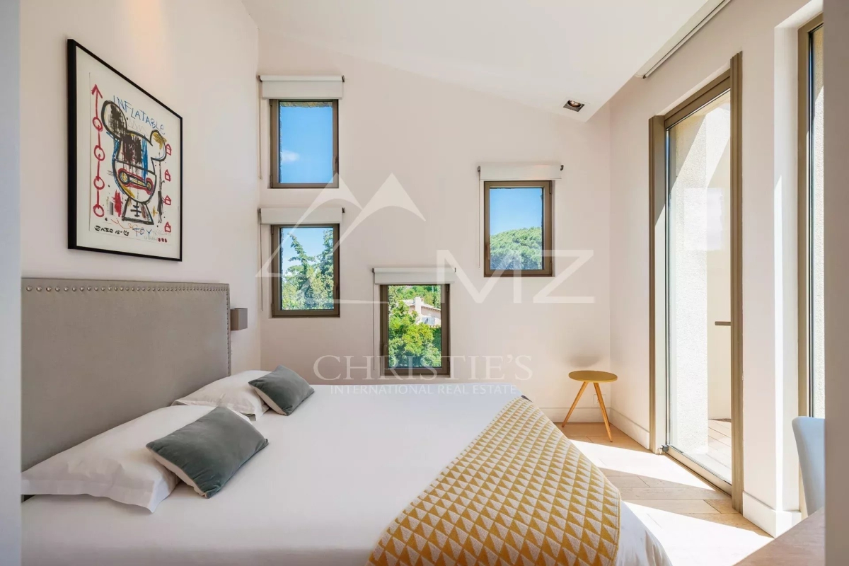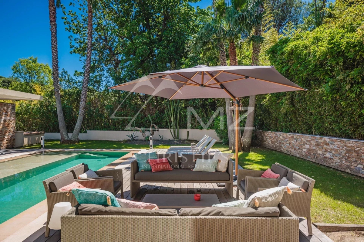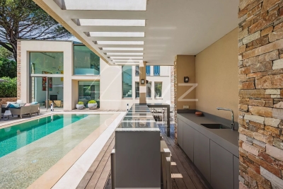 Ideally situated just a few steps from the famous Place des Lices and the centre of Saint-Tropez, this contemporary-style property boasts approx. 1,200m2 of perfectly landscaped grounds. It has 3 levels, offering a bright, open-plan interior with large windows, a pleasant living room, a dining room, a fully-equipped kitchen, several sunny and shady terraces, a petanque area, a pool house, a fully-equipped outdoor summer kitchen with barbecue area and a swimming pool. It has 4 bedrooms, one of which is on the ground floor, each with its own shower room, plus a family room/games room in the basement that sleeps 2. This beautifully appointed villa is just a stone's throw from the village of Saint-Tropez.