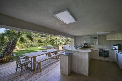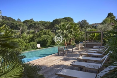 Modern architecture villa of around 450m2 located on landscaped grounds of 2811m2, comprising 6 suites with bathroom / shower. This villa benefits from great benefits and is ideally located close to La Place des Lices and 2 minutes from the beaches of Pampelonne by car. Heated swimming pool. Sauna, air conditioning, pétanque court, alarm.