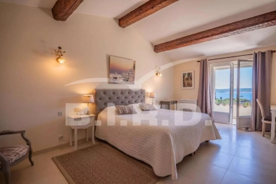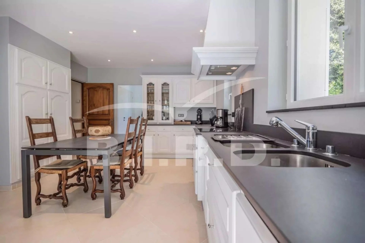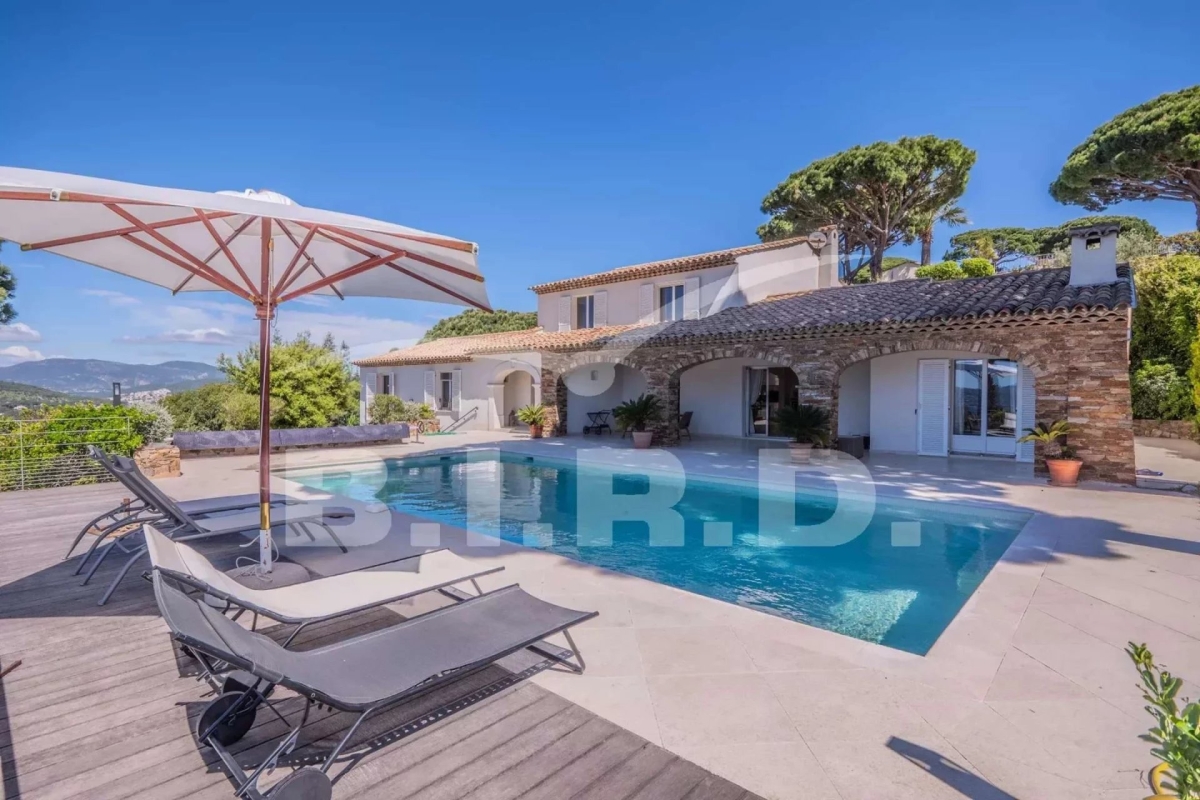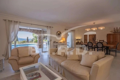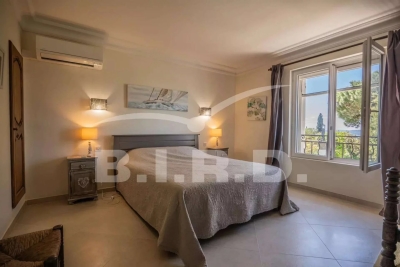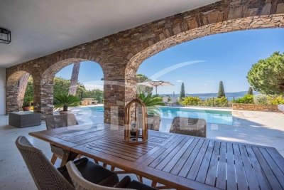 In Sainte-Maxime, just on 10 minutes' walking distance from the centre and beaches, in a highly sought-after, absolutely peaceful location, this superb, spacious, high-quality property offers magnificent sea views over the Gulf of Saint Tropez. Fully air-conditioned for optimum comfort, it features a spacious living/dining room, a fully-equipped open-plan kitchen with a practical utility room including a washing machine and dryer, and two en suite bedrooms with bathrooms on the ground floor. Upstairs, two further en suite bedrooms with bathrooms provide a cosy, intimate space. Outside, an elegant covered terrace invites you to relax, overlooking a 12 x 6 metre heated swimming pool, a barbecue area, a bowling alley and two covered parking spaces with a double garage add to the practicality of this property. With Wi-Fi internet access to keep you connected at all times, this villa embodies the perfect marriage of comfort and practicality.