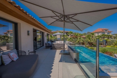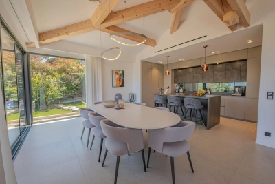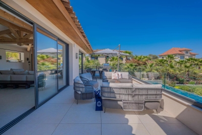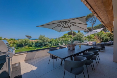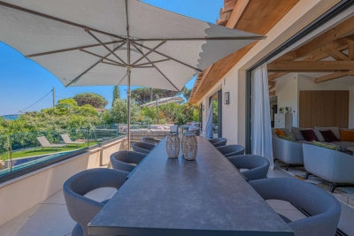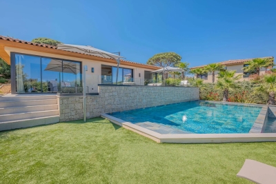 Come and enjoy this magnificent contemporary villa on three levels. It invites you to live exceptional moments and unforgettable holiday memories. A modern living room overlooking the sea and its magnificent pool, a large terrace for lunch with family or friends. A beautiful fully equipped open kitchen and dining table. A huge laundry room (washing machine, dryer, double fridge) A first double room and its shower room/ toilet guests, a television After a few steps you will find there; a first double room and its shower room/ toilet guests, a TV. A second bedroom en suite (TV) its bathroom/ shower/ wc guests and its terrace on the patio, a beautiful dressing. A fitness gym with view and access to the patio, (can be made available as a bedroom for two children on request); a shower room and toilet adjoining the gym. On the first floor you will find three double bedrooms (TV) and their shower room/ guest toilet with refined and personalized decoration in each room. Outside: a pool in Balinese style, small rest areas offering a relaxing space. A garden with trees and quiet. A bowling alley. A huge garage that can accommodate several cars, an electric terminal available. Parking spaces outside. Privileged access to the beach on foot, the center villa 5 minutes by car. The most of the villa: Optimal wifi connection (starlink); a beautiful sea view and on the city center of Sainte Maxime. A quiet in a private and secure domain. Entry/exit high season: from Saturday to Saturday (7 nights min) To be paid on the spot: Deposit and Tourist tax Registration No: 83115005390HT