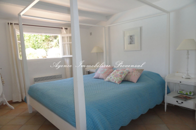 For vacation, beautiful villa with swimming pool for rent for 8 people close to the town center and the beach in Sainte Maxime. It consists on the garden level of a living room with a fully equipped kitchen, 3 bedrooms including a children's room with bunk beds, 1 shower room, 1 bathroom, 1 WC. Upstairs: 1 large bedroom with shower room and WC. Air conditioning in all bedrooms Pool can be heated (max 27°) on request and as an option, 4.5 x 9 m (depth 1.85 m). Security alarm. Pool house with grill and barbecue next to the pool. Boules pitch. The garden and villa are very pleasant. Parking for 2 cars. Furnished rental rating: 4**** Pets are not allowed. Bed linen is provided. Prices for June and September €2,963/week. Price for the first half of July €3,503/week. Price for the last 3 weeks of July €4,179/week. Price for August €4,179/week. Price for the last week of August €3,503/week. For information, availability and dates: please contact us by email at Registration number: 83115003540AK Contact: +33(0)494960018.