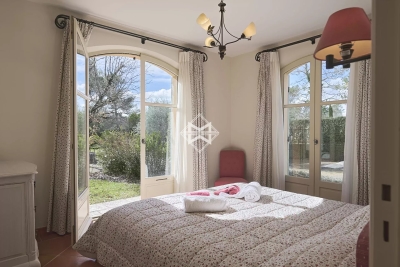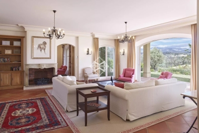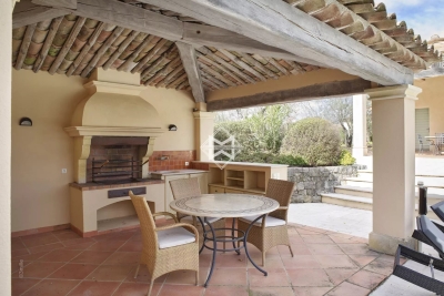 Domaine de Terre Blanche, South of France Nestled in the heart of the very popular and secure Domain of Terre Blanche, Provençal-style villa with beautiful volumes offering top-of-the-range services, all in an exceptional setting with a 300-hectare park, hosting two 18-hole golf courses and independent access to the Terre Blanche 5-stars spa hotel. The villa develops an area of 272 m2 on two levels, has beautiful living spaces with a large living room with a fireplace, a dining room, an equipped kitchen, a TV lounge with fireplace and 4 bedrooms with their en-suite bathrooms. In addition, there is a swimming pool, a summer kitchen with its covered dining area, a petanque court and a closed garage for two vehicles, all in a quiet setting on a plot of 3,070 m². It is an ideal location for exploring the nearby medieval villages of Seillans, Callian and Montauroux. A real haven of peace, in a green setting, at one of the most renowned addresses on the Côte d'Azur.