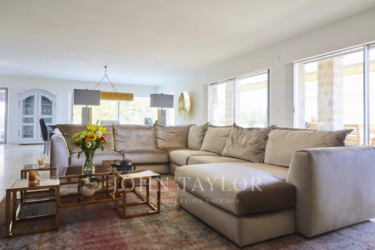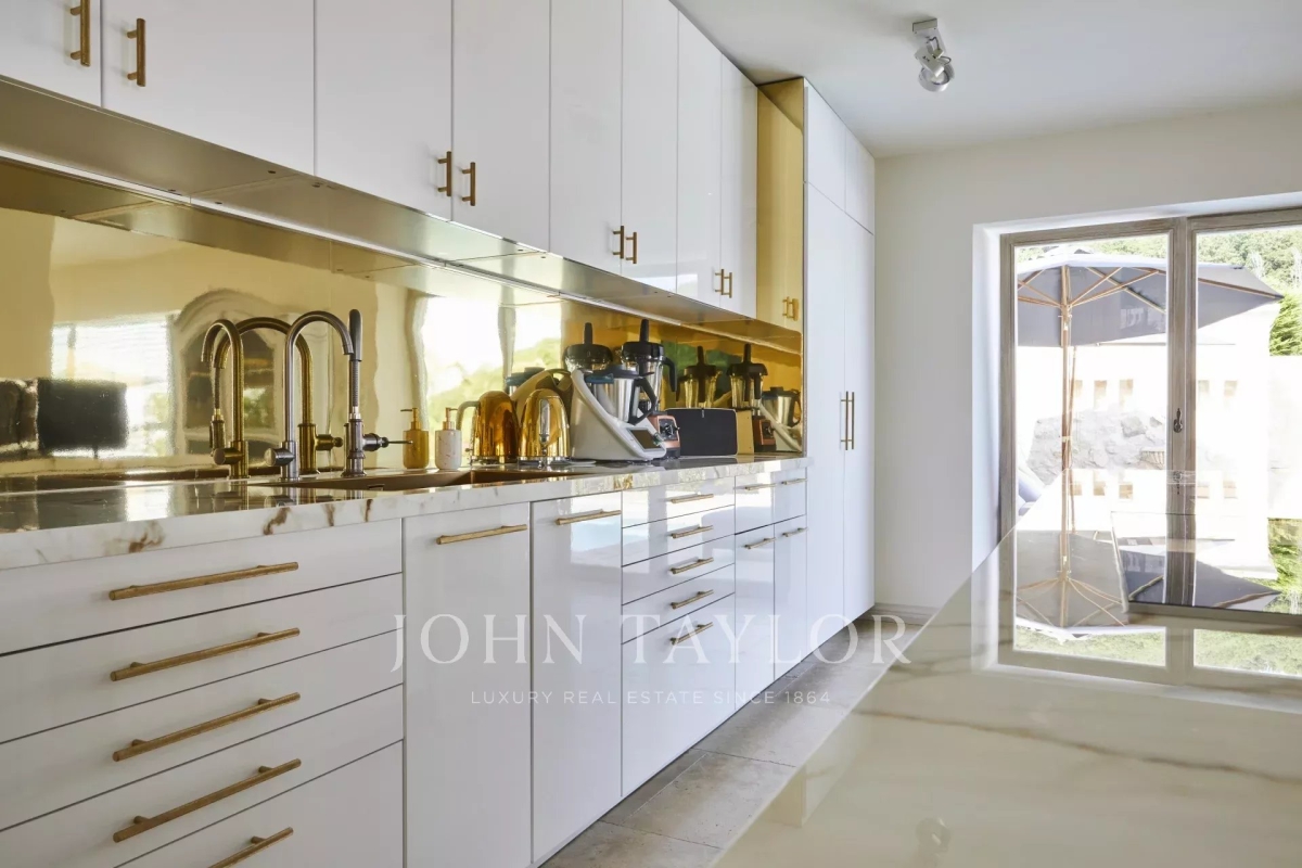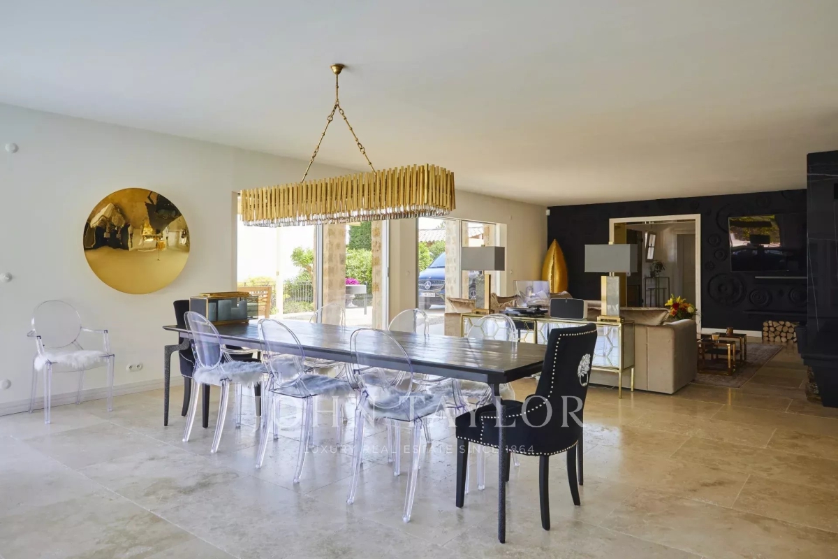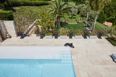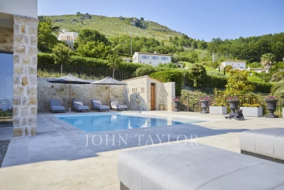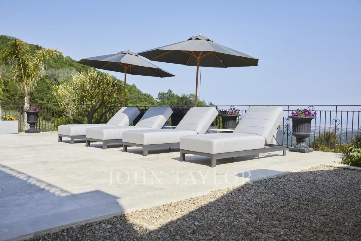 Sumptuous 300m2 villa set in a totally peaceful location in the hills above Tourrettes-sur-Loup, a stone's throw from the old village and hiking trails. Magnificent views of the sea and surrounding hills. Ideally located close to Nice airport, 40 minutes from Nice, Cannes and Antibes, yet enjoying a relaxing inland setting. The property can accommodate 10 people with its 5 bedrooms: 4 adult rooms and one children's room. All rooms have ensuite shower/bathrooms and dressing rooms. All rooms are air-conditioned. On the first floor, a beautiful living area with a TV, Sonos sound system and wood-burning fireplace. The living room is bathed in light with a magnificent corner window, and is an extension of the fully-equipped kitchen with central island. Outside, a large terrace with dining area, heated swimming pool and outdoor shower. A wooded garden with petanque court and numerous olive trees. Information on the risks to which this property is exposed is available on the Géorisques website: www.georisques.gouv.fr Contact: 0603211912.