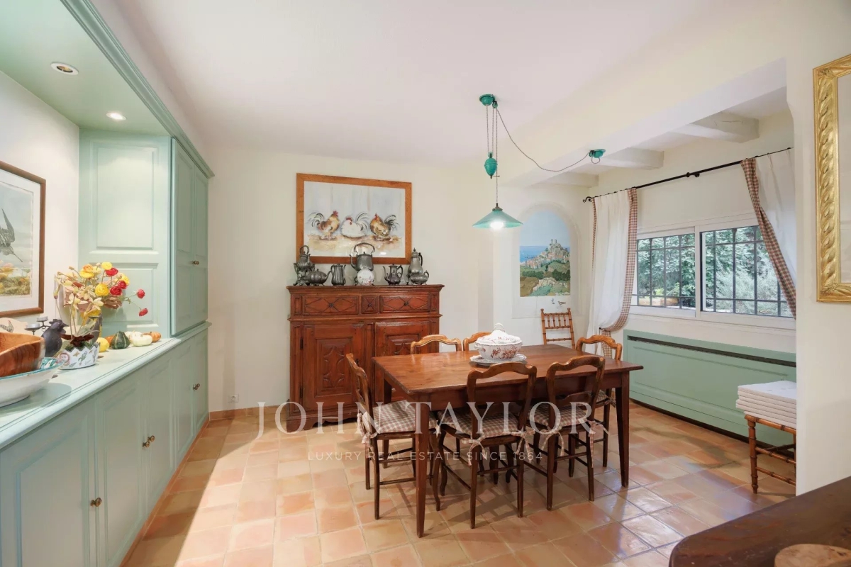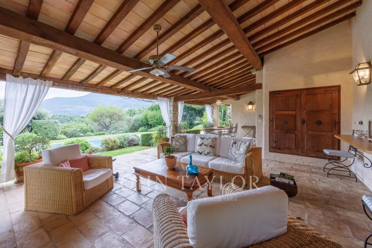 Discover this superb Provencal house located in the prestigious, gated and secure Domaine des Hauts de Saint-Paul, ideal for lovers of charm and tranquility. Nestled in a verdant setting, this spacious home offers all the comforts needed for stays with family or friends, with generous living spaces. The house is built on two levels with a basement, and offers many bright and welcoming spaces. On the first floor, enjoy two comfortable living rooms, a convivial dining room, as well as an office, perfect for telecommuting or relaxing with a good book. The large, fully-equipped kitchen is perfect for preparing delicious meals, which you can enjoy on the terrace, complete with fireplace and barbecue, ideal for summer evenings. The five bedrooms, divided between the ground and upper floors, are accompanied by four shower rooms and one bathroom, offering optimum comfort for all occupants. Practical outbuildings are also available for maximum storage. Outside, the house offers a vast relaxation area with a beautiful private swimming pool surrounded by greenery. The garage provides secure parking for two vehicles. Finally, the house is ideally placed for nature lovers, with hiking trails nearby, offering magnificent views of the surrounding hills and the Mediterranean Sea in the background. You're just 20 minutes from Nice and a short drive from Saint-Paul-de-Vence, one of the region's most beautiful villages. Information on the risks to which this property is exposed is available on the Géorisques website: www.georisques.gouv.fr Contact: 0603211912.