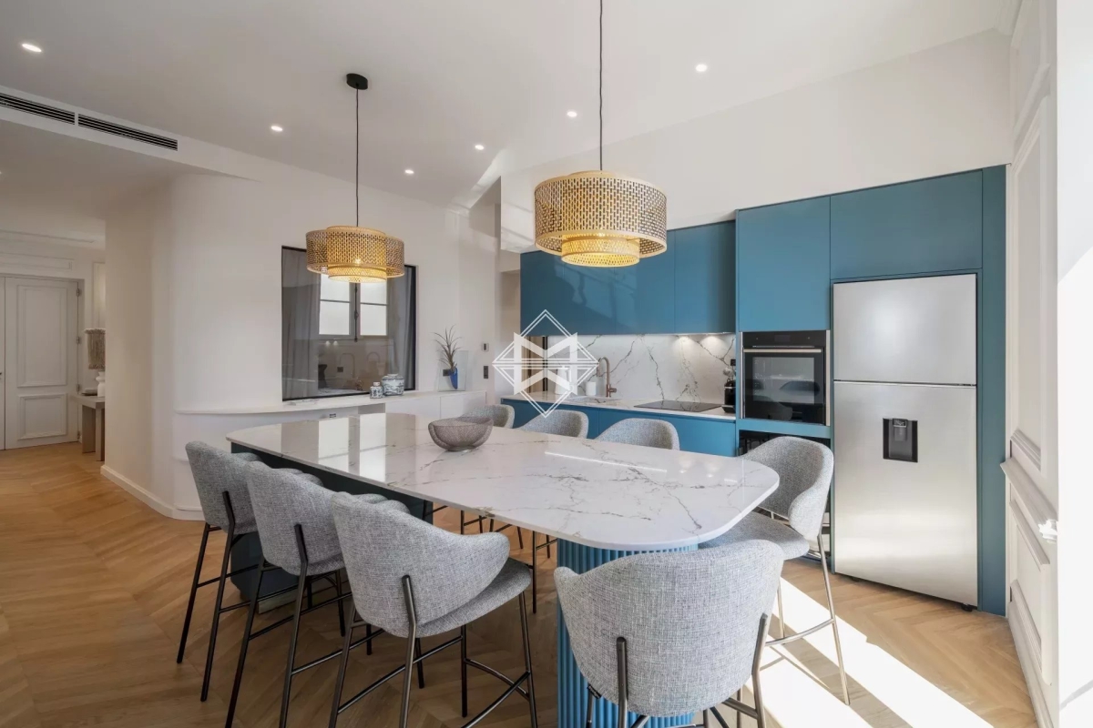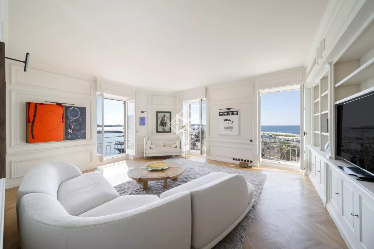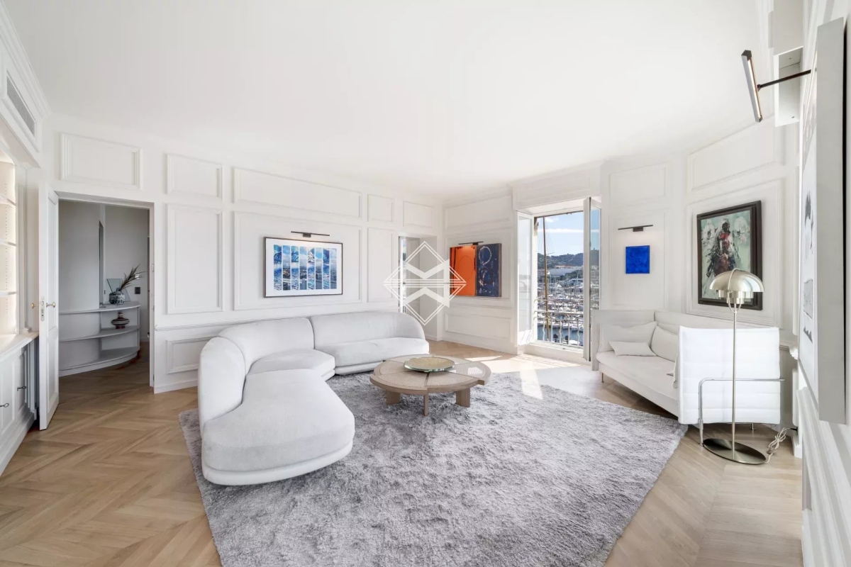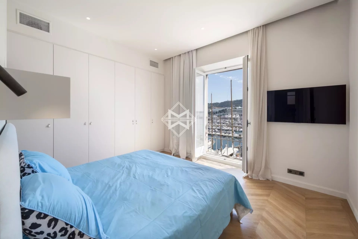 Idéalement situé face au Vieux Port de Cannes, à seulement quelques minutes à pied du Palais des Festivals, ce somptueux appartement de près de 104 m² a été entièrement rénové et bénéficie d'un emplacement exceptionnel et d'une vue imprenable sur la mer, les îles de Lérins et la Croisette. Entièrement climatisé, il se compose comme suit : - Une entrée avec placards - Un vaste salon avec vue sur le port - Une cuisine entièrement équipée ouverte sur la salle à manger - Chambre 1 : Master avec lit de 180cm, salle de douches WC, placards, TV avec vue sur la mer - Chambre 2 : suite invités avec lit de 180 cm, placards et salle de douche - Un WC invités indépendant Estelle FACCHINETTI - Agent commercial - EI - RSAC 87862822