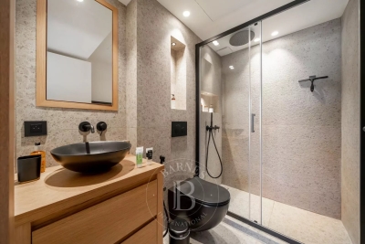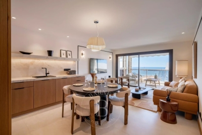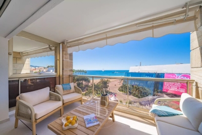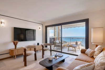 Entièrement rénové en 2025, cet appartement d'environ 88 m², situé au 7ème étage, offre une belle vue sur la mer dans un cadre contemporain face au Palais des Festivals. Il se compose d'un agréable espace de vie avec cuisine ouverte, s'ouvrant sur une terrasse de 10 m² face à la mer. L'espace nuit comprend 3 chambres, chacune avec son espace bureau et sa salle de douche en suite. Des prestations modernes et un emplacement idéal à quelques pas des plages en font un bien parfait pour un séjour agréable à Cannes.