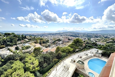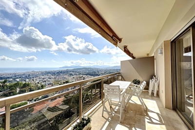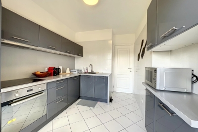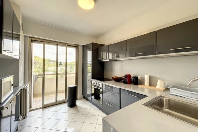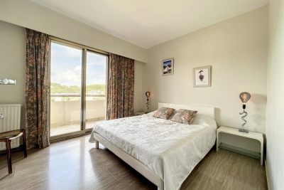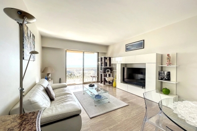 Le Cannet, quartier résidentiel des Bréguières; luxueux 2 pièces traversant entièrement rénové de 63m² au 9ème étage d'une résidence de standing gardiennée avec piscine chauffée et 2 courts de tennis. L'appartement est composée d'un hall d'entrée qui dessert un vaste séjour ouvert sur la terrasse exposée au sud offrant une vue panoramique du Cap d'Antibes à l'Esterel. Une cuisine équipée neuve avec bénéficiant d'un équipement de grande qualité, le coin nuit est composée d'une entrée avec placard, d'une chambre avec lit double 1.60, dressing et porte fenêtre ouverte sur le balcon et une salle de douche italienne avec double vasque et wc. Un canapé convertible 140 dans le séjour. Parking extérieur. LOCATION SAISONNIERE Contact: +33609067234.