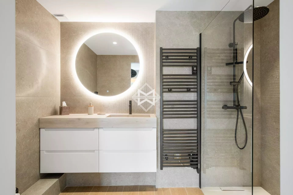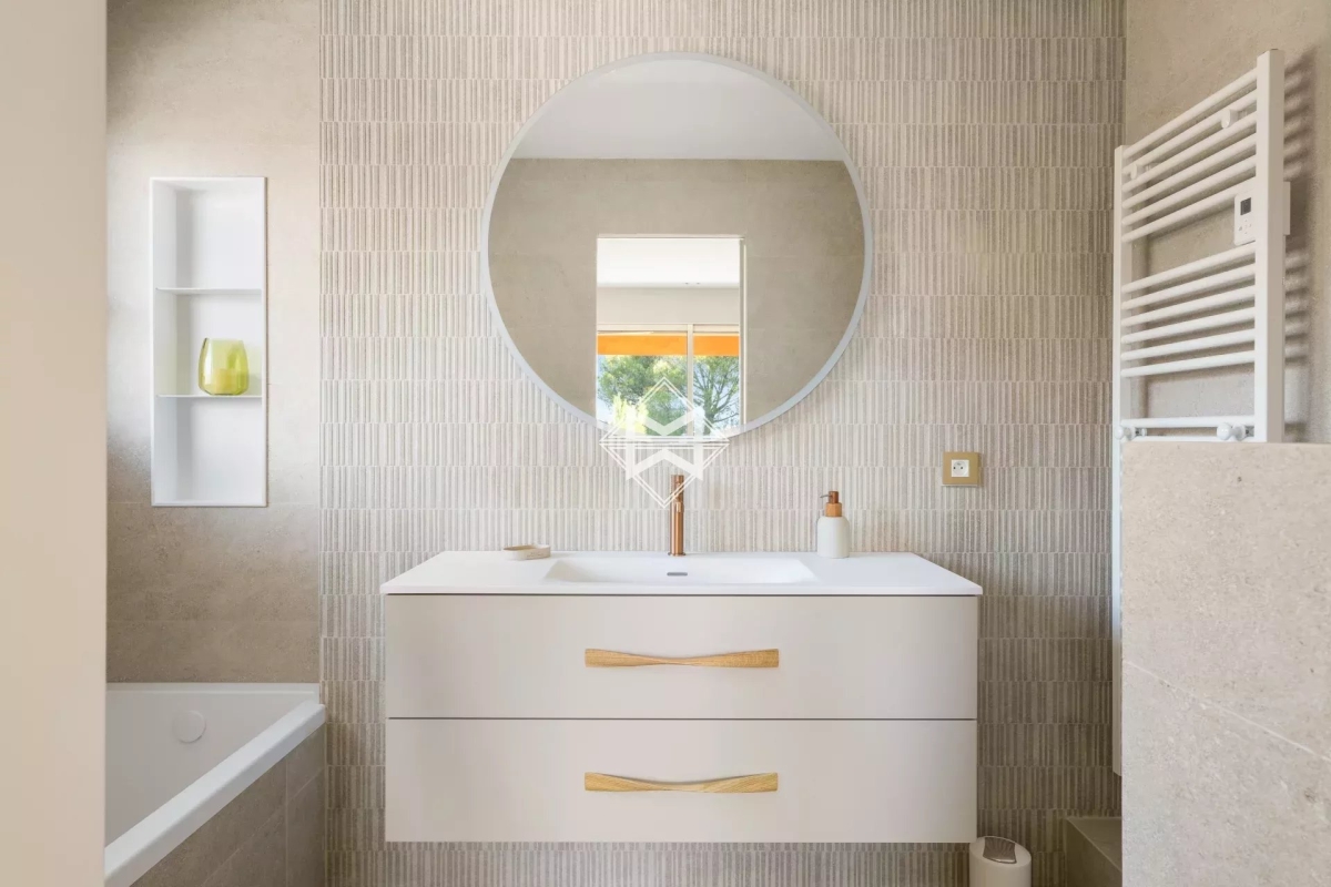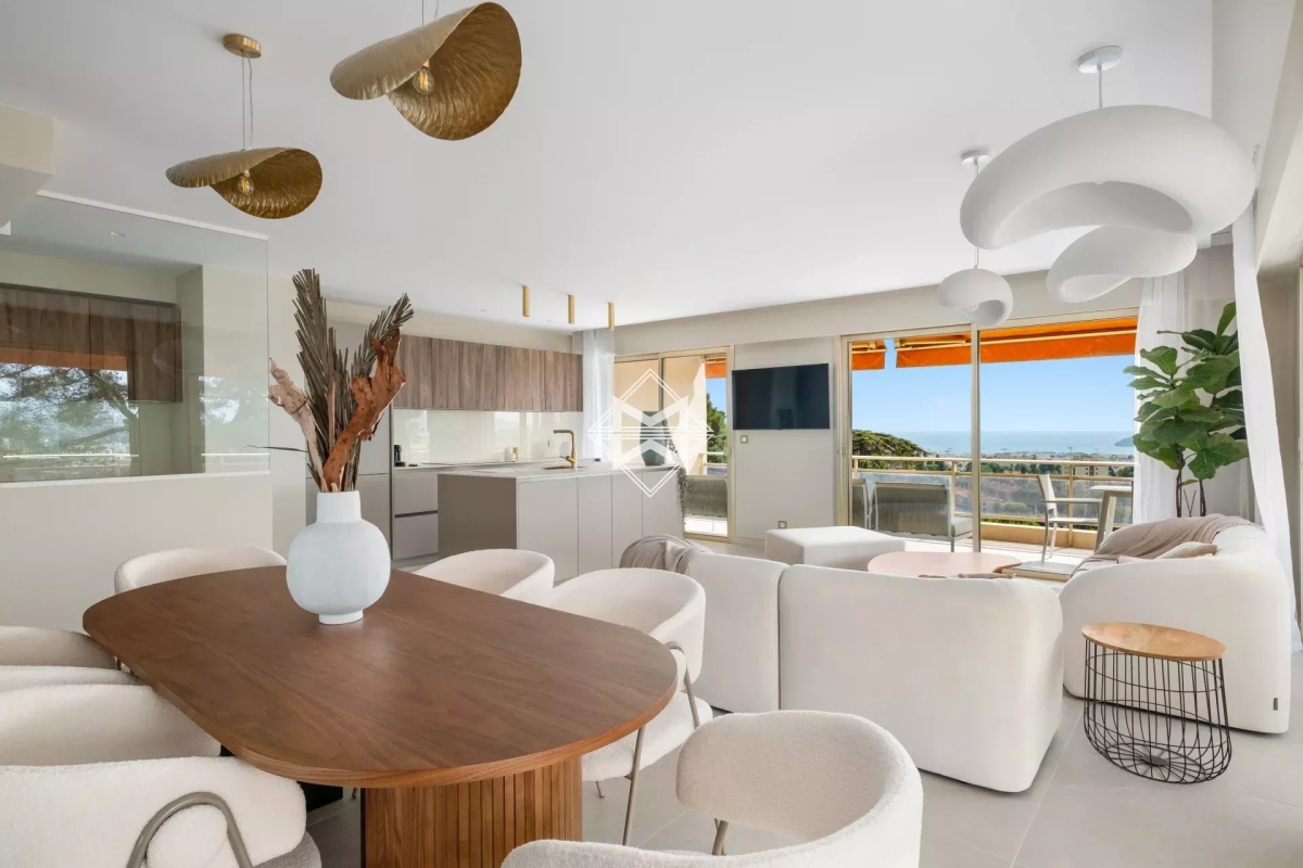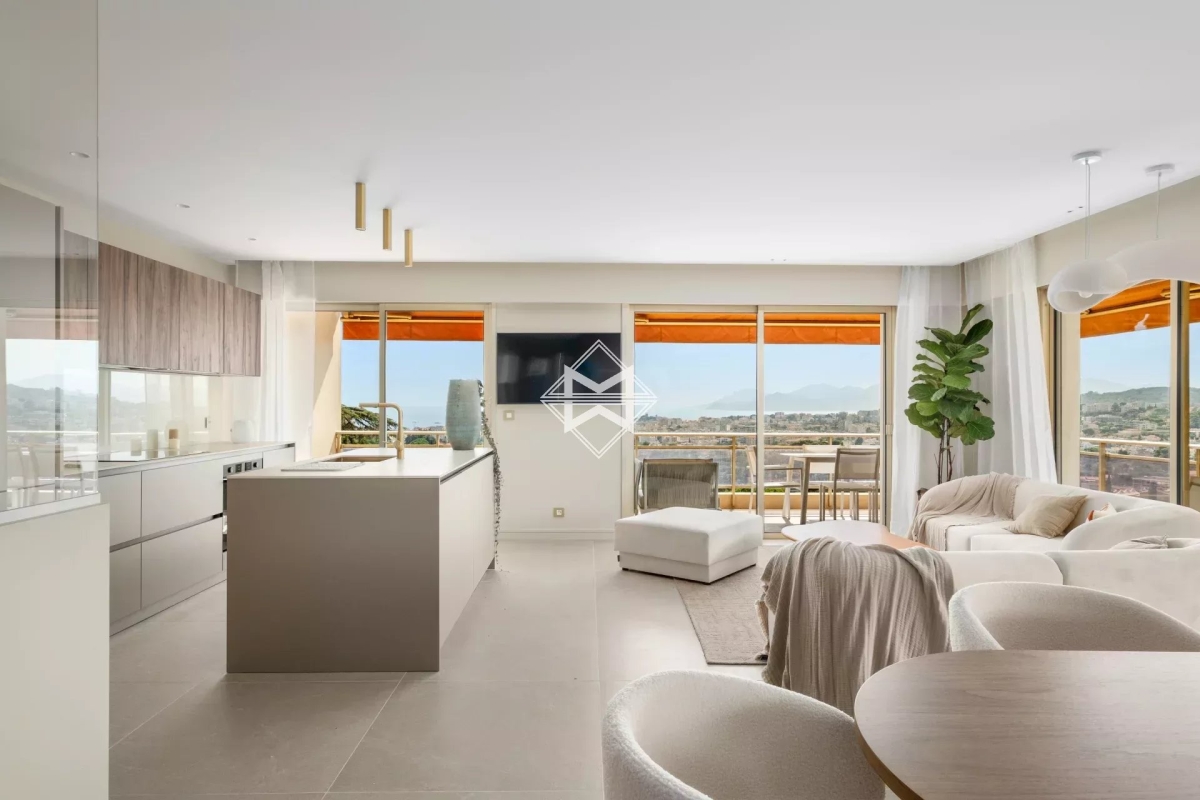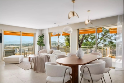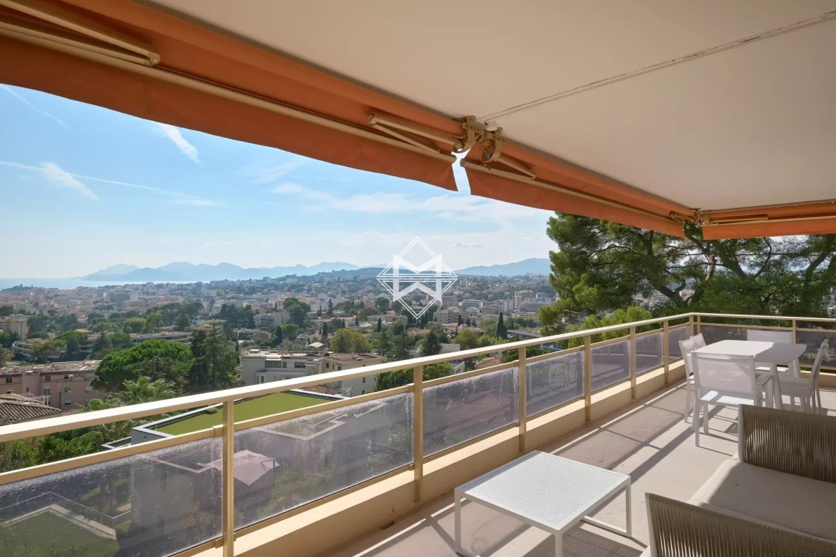 Situé au Cannet, ce superbe appartement d'environ 110 m² se trouve au dernier étage, garantissant une tranquillité absolue. Il dispose d'une grande terrasse en angle de près de 60 m², idéale pour profiter du climat méditerranéen et de la vue dégagée. L'appartement se distingue par ses finitions élégantes et modernes. Les matériaux de qualité et les détails soignés créent un espace lumineux et confortable, tout en restant proche des commodités locales, à 5 minutes du vieux Cannet et à 10 minutes du centre de Cannes. Il se compose comme suit : - Une entrée avec grands placards - Un WC invités - Un vaste salon avec salle à manger - Une cuisine ouverte entièrement équipée - Une buanderie avec lave et sèche linge - Chambre 1 : simple avec lit de 140cm et placards - Chambre 2 : suite de Maîtres avec lit de 160cm, dressing, salle de douches, vasque simple, WC et accès terrasse - Chambre 3 : suite de Maîtres avec lit de 160cm, salle de bains et douches, WC, placards Piscine dans la résidence Montant estimé des dépenses annuelles d'énergie pour un usage standard : 1540€ ~ 2140€ - Estelle FACCHINETTI - Agent commercial - EI - RSAC 87862822