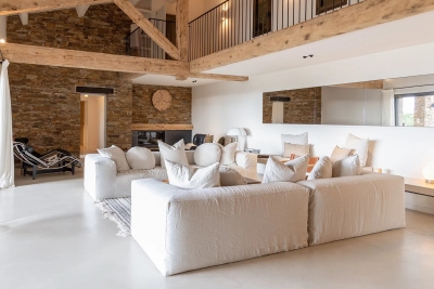 Cabasson - Propriété rare avec vue dominante sur le Fort de Brégançon et les vignes du château Malherbe, l'île de Porquerolles et la presqu'île de Giens. Architecture en pierre de Bormes réalisée en 1987, pour 295m² sur 1,3 hectares de terrain paysager, elle dispose de 5 chambres doubles en suite avec salle de bain et une chambre double avec dortoir (4 personnes) et salle d'eau et d'une piscine à débordement. (14 couchages). Le rez de chaussée se compose d'un hall d'entrée, un vaste séjour double hauteur de 68m² avec cheminée, une grande cuisine ouverte, un office, deux chambres en suite, l'ensemble ouvert sur l'extérieur par une spacieuse terrasse Sud de 300 m² donnant sur la piscine et la vue mer. L'étage s'organise en une mezzanine de 33m² et de 3 chambres en suite dont un dortoir. Une chambre indépendante avec salle d'eau complète la propriété. Le sous sol présente un grand garage. Le jardin est aménagé et paysager. Il est agrémenté d'un terrain de pétanque et un parking couvert (3 voitures). Pour amoureux de calme et d'authenticité en bord de mer... Contact: +33660892011.