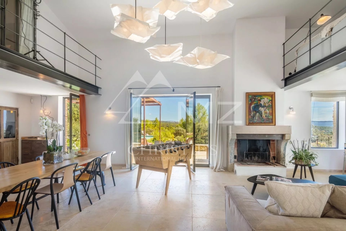 À quelques minutes du centre du village de Cabrières d'Avignon, au calme absolu sans être isolé, laissez-vous charmer par cette belle maison récemment rénovée à l'orée de la fabuleuse forêt des Cèdres. Le jardin de garrigue est agrémenté de chênes, d'oliviers et de multiples essences provençales. De la piscine ou de la terrasse, vous pourrez profiter de la vue magique sur le village perché de Gordes. Le séjour lumineux et spacieux est ouvert sur de nombreuses terrasses. La grande cuisine équipée s'intègre parfaitement dans cet intérieur très contemporain qui propose charme et confort. La maison peut accueillir 6 personnes : deux chambres doubles en rez-de-jardin, une à l'étage, chacune avec sa salle de bains ou douche. Tout est réuni pour des vacances de rêve au rythme de la Provence.