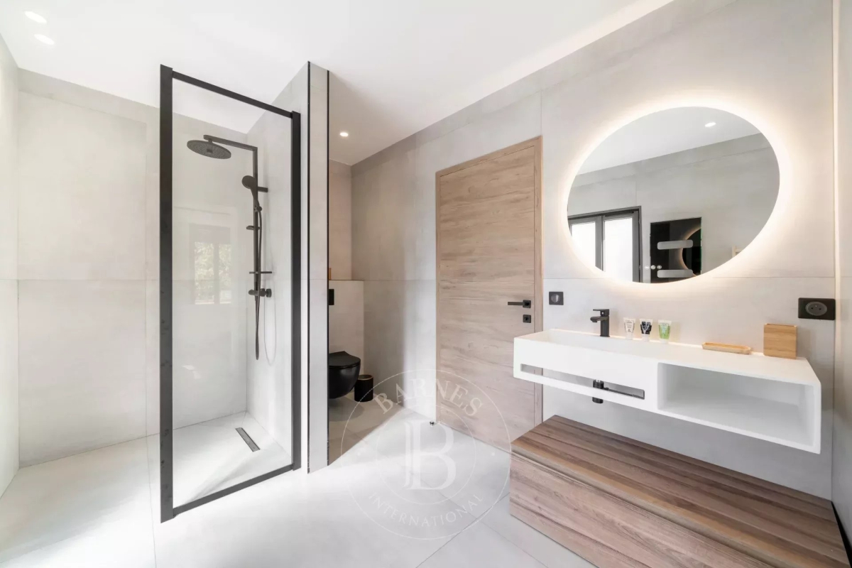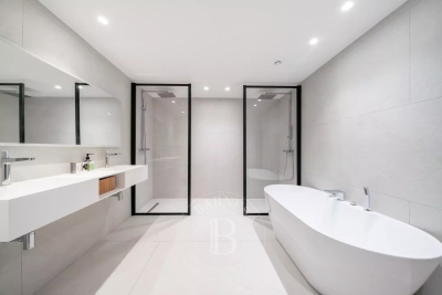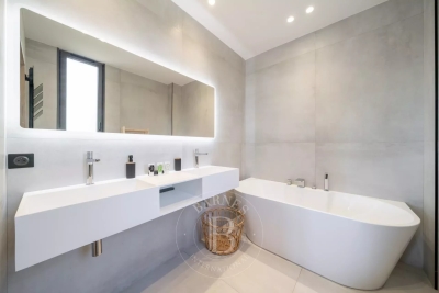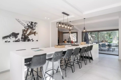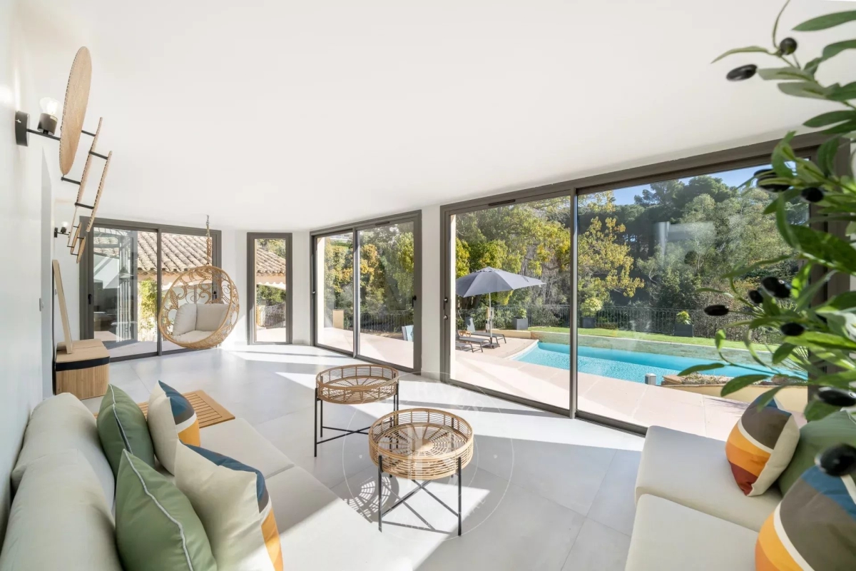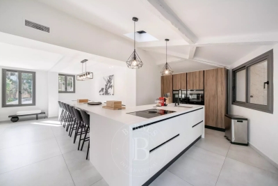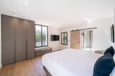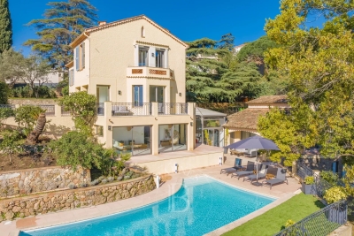 Située dans un cadre prestigieux avec une vue dégagée sur la mer Méditerranée, cette somptueuse villa de style provençal moderne allie élégance et confort. Idéalement exposée sud-est, elle offre une atmosphère chaleureuse parfaite pour des séjours d'exception. D'une surface habitable de 450 m², la propriété se compose de 7 chambres réparties sur deux maisons indépendantes, pour un total de 10 pièces et une capacité d'accueil de 14 couchages. Chaque espace a été conçu pour offrir un confort absolu, grâce à des prestations haut de gamme et un état excellent.