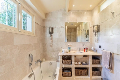 Villa de charme de 250 m² idéalement située dans le versant Est du Cap d'Antibes avec une jolie vue mer dans un environnement très calme. Cette propriété de plain pied se compose de quatre chambres en suite pour une capacité de huit personnes, d'un vaste salon/salle à manger décoré avec goût et d'une cuisine indépendante entièrement équipée ouvrant sur un patio fleuri. A l'extérieur, une piscine avec salon de jardin ainsi qu'un pool house équipé.