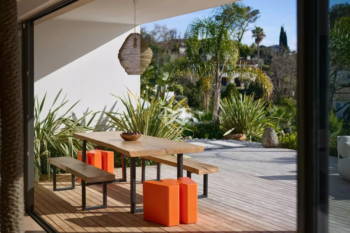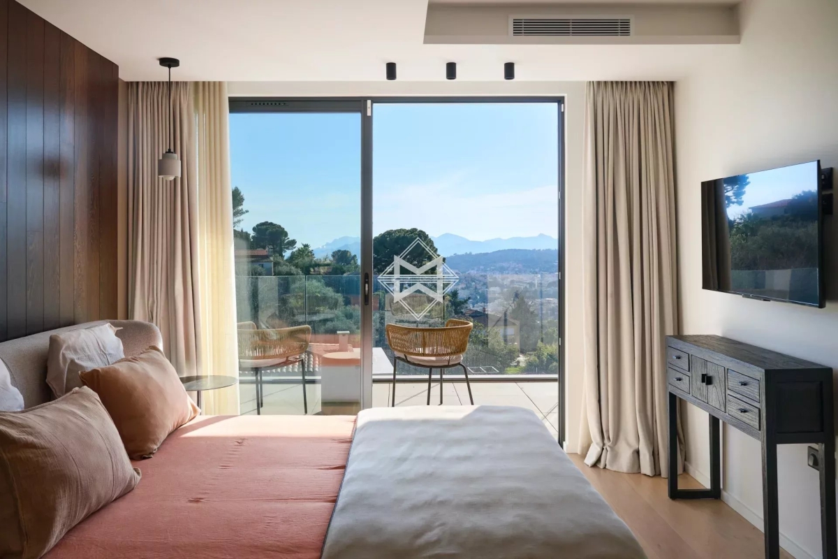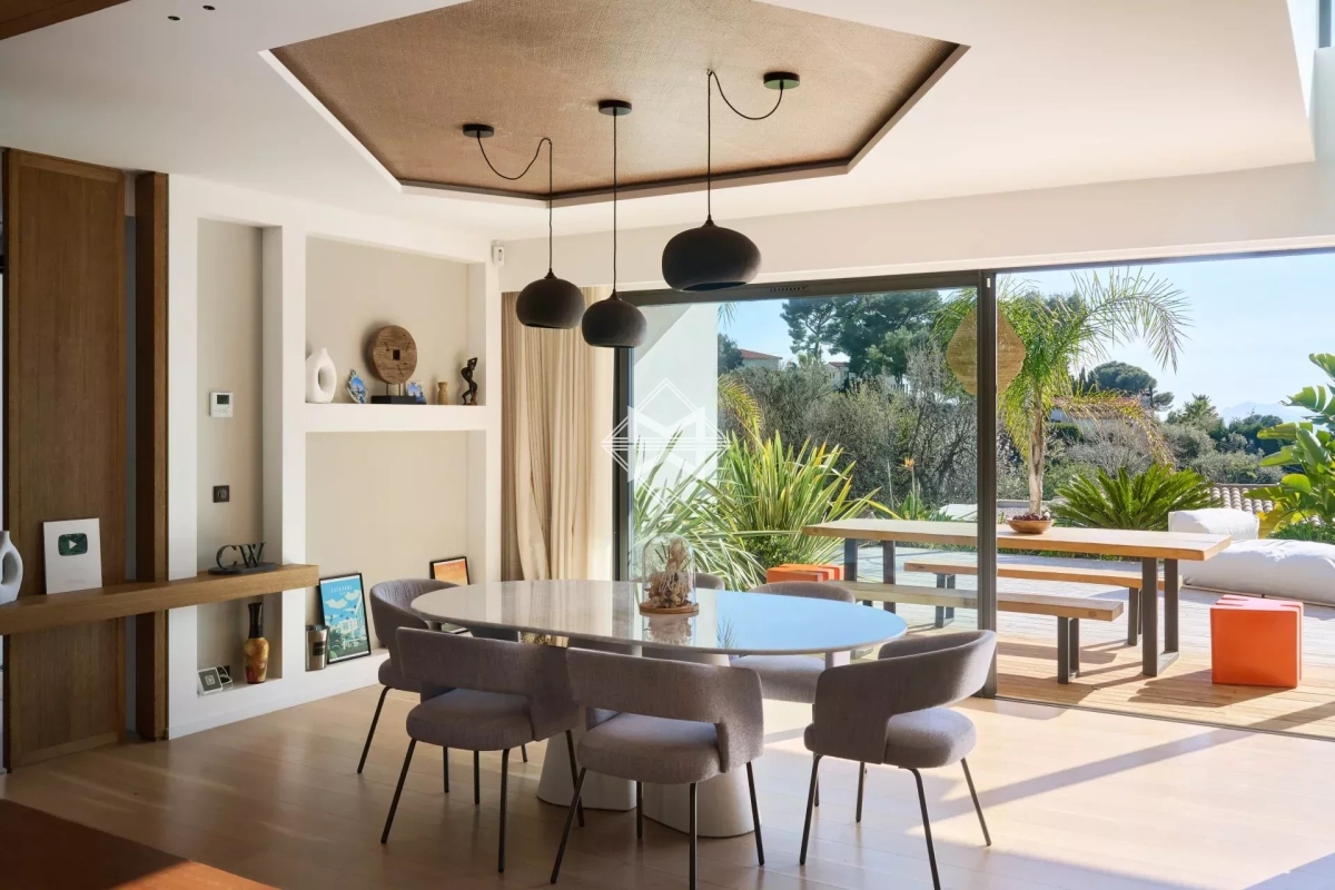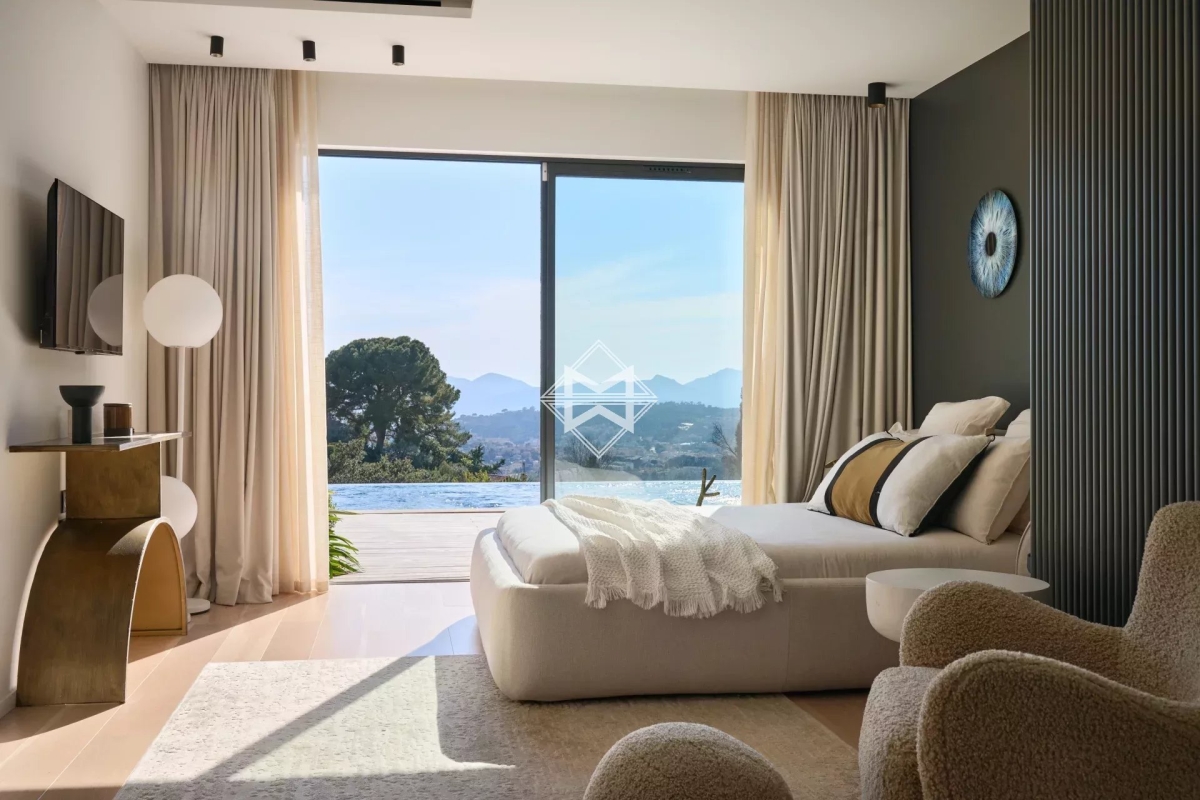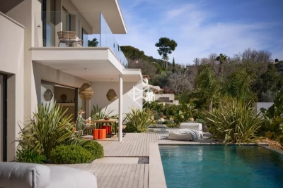 Dans un domaine privé et sécurisé, cette villa contemporaine d'environ 220 m², construite en 2022, offre un cadre de vie alliant confort et modernité. Dans les hauteurs du Cannet, quartier calme et résidentiel. Elle se compose comme suit : AU REZ-DE-CHAUSSÉE : - Une buanderie avec machine à laver et sèche linge - Un vaste salon lumineux ouvert sur la salle à manger - Une cuisine ouverte avec îlot central entièrement équipée - Une cave à vin - Une cheminée centrale - Master 1 : lit de 160cm, un dressing, TV, salle de bain/douches, WC indépendants et un accès à la piscine A L'ETAGE : - Chambre 2 : suite avec lit 180CM, une salle de douche, WC indépendants, placards - Chambre 3 : suite avec lit de 160cm, TV, salle de douche, WC indépendants, placards et un accès à la terrasse - Chambre 4 : suite avec lit 160CM, dressing, salle de douche, WC indépendants et un accès à l'arrière de la maison. Entièrement climatisée. Un toit terrasse aménagé en espace détente et sport, un espace avec transats, barbecue et table à manger, un garage et une piscine de 12x4M pouvant être chauffée complètent ce bien. Estelle FACCHINETTI - Agent commercial - EI - RSAC 87862822