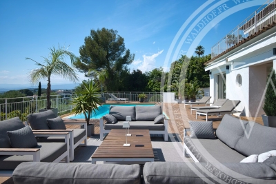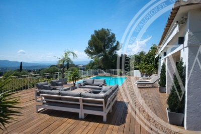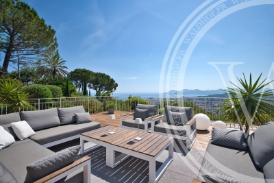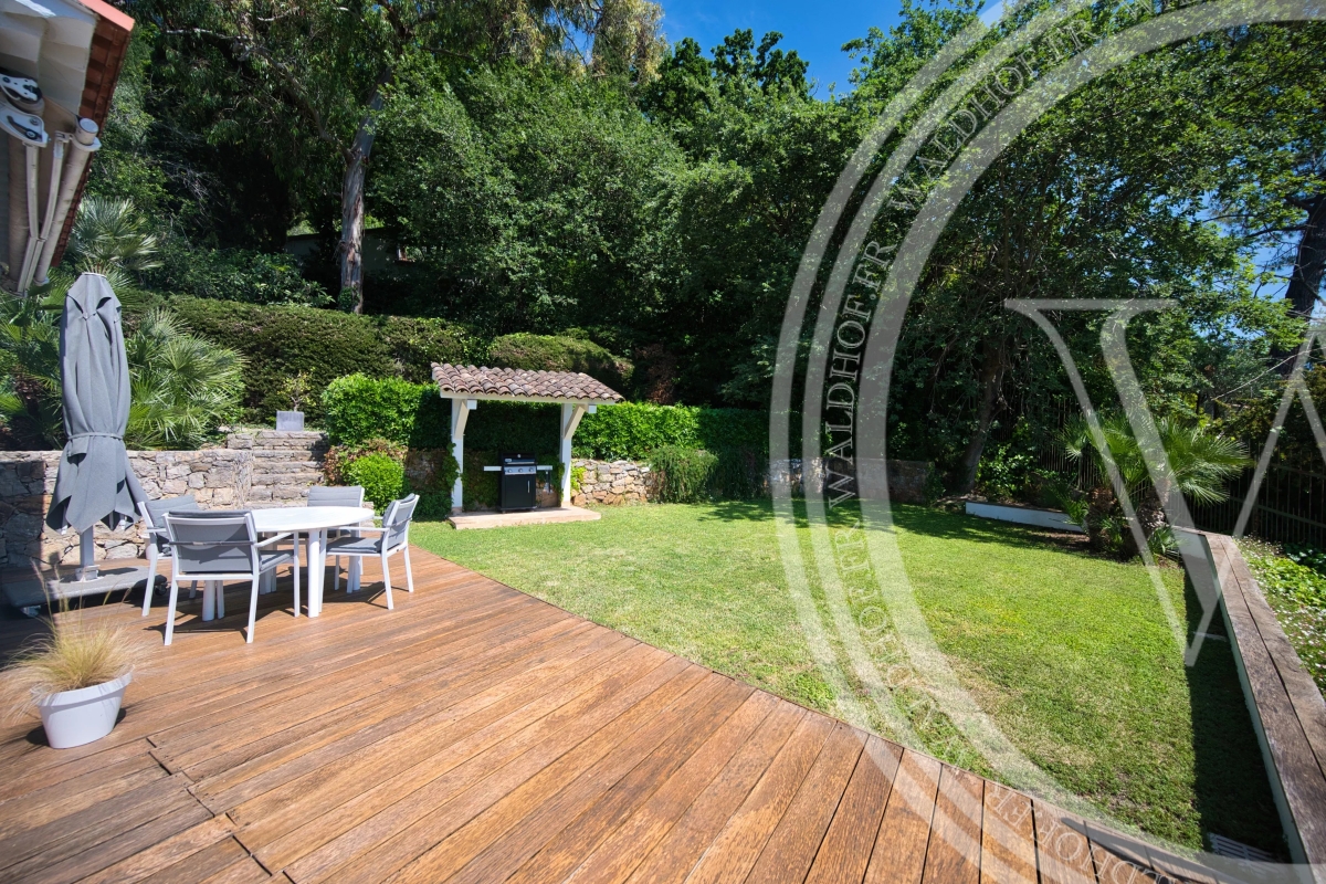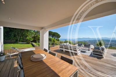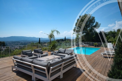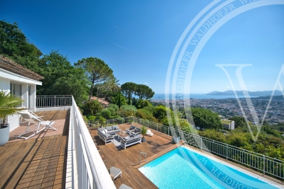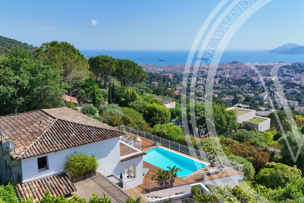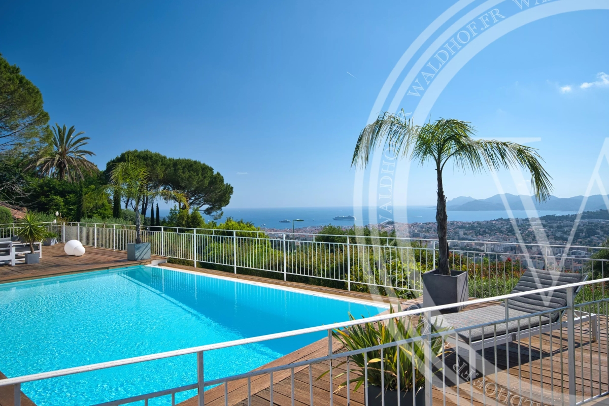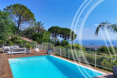 Profitez d'une vue exceptionnelle sur la baie de Cannes et le massif de l'Esterel au calme dans une spacieuse villa sans vis à vis à 10 mn du centre de Cannes Le logement La villa d'une superficie de plus de 300 m2 exposée sud ouest comprend au niveau de la piscine un salon d'agrément, un salon TV, une grande cuisine, une salle à manger , un bureau , un WC et un vestiaire. A l'étage , deux grandes chambres , une salle de bains, une salle d'eau , un dressing et de nombreux placards Au niveau Rez de jardin, deux chambres, une salle d'eau et une buanderie Autres remarques Terrain de pétanque Contact: +33651318572.