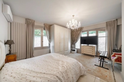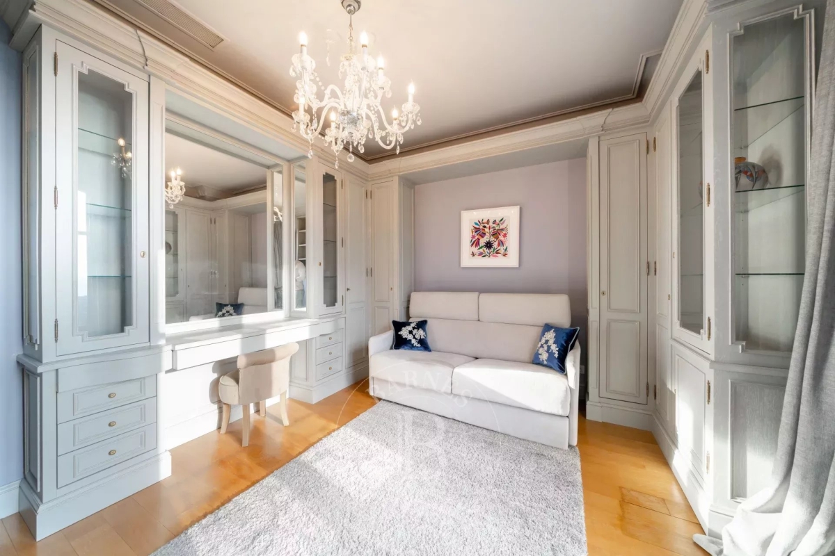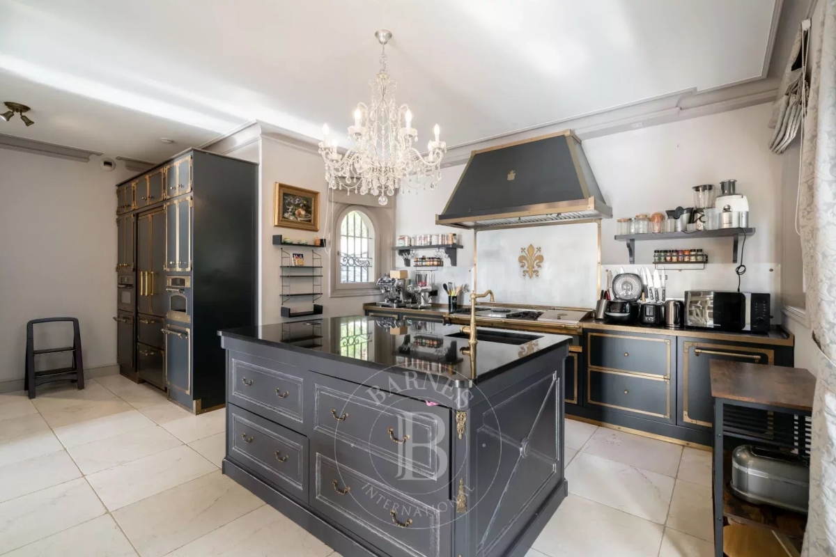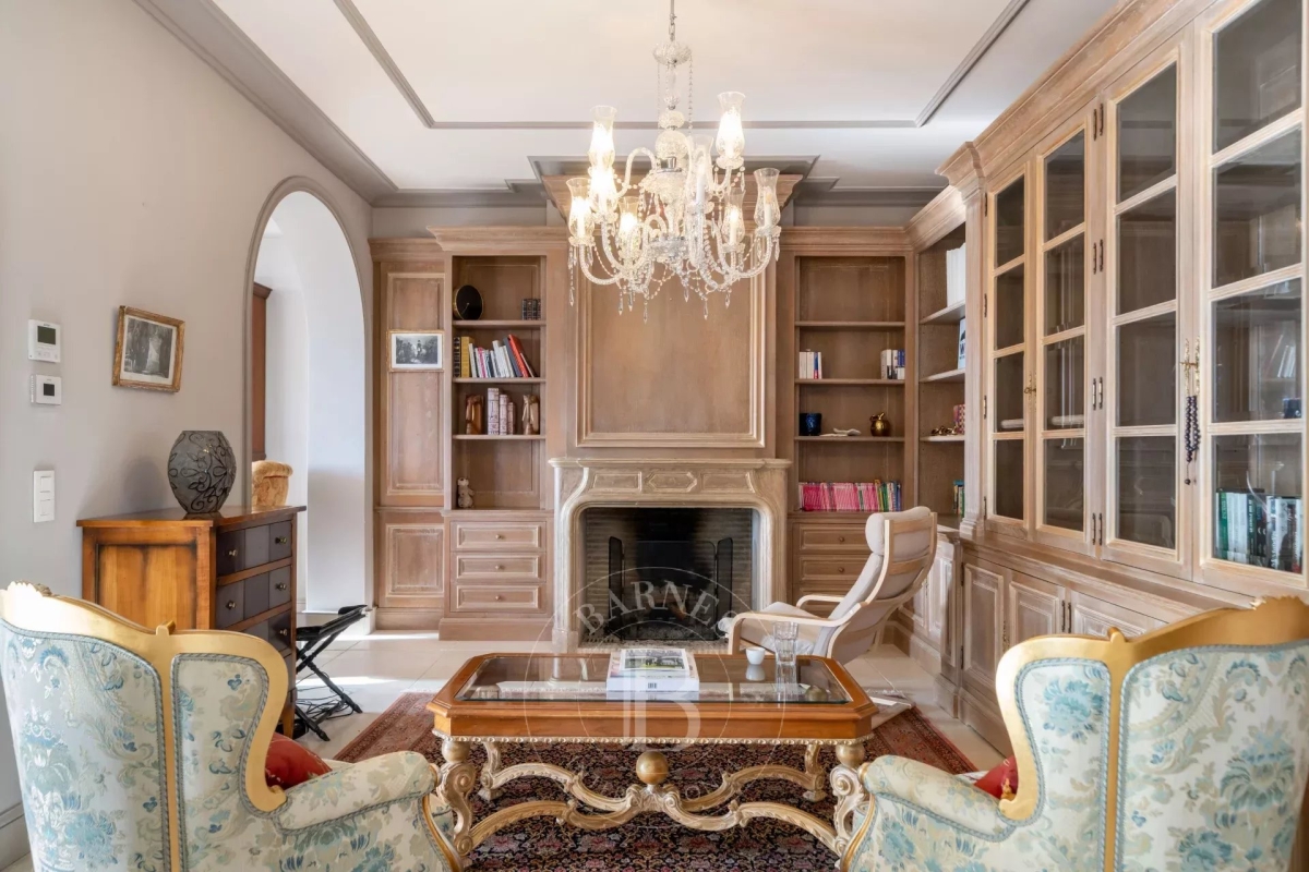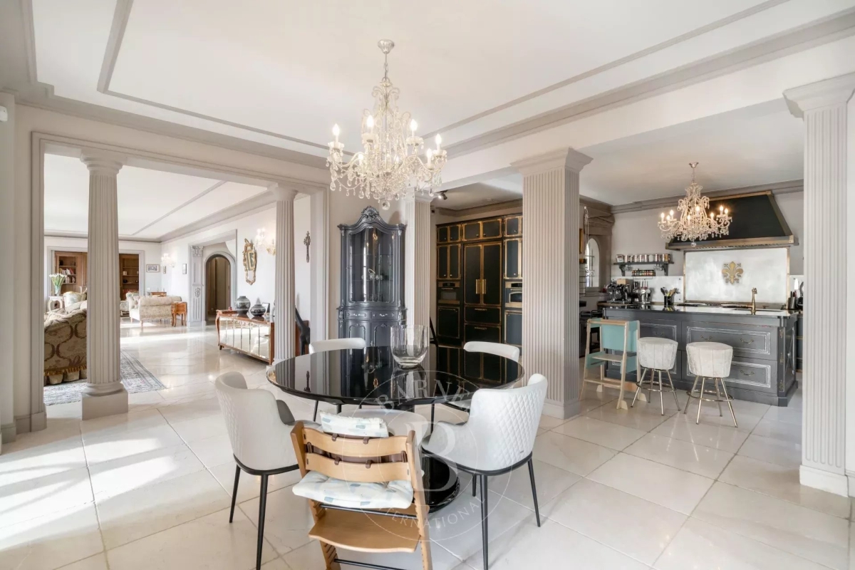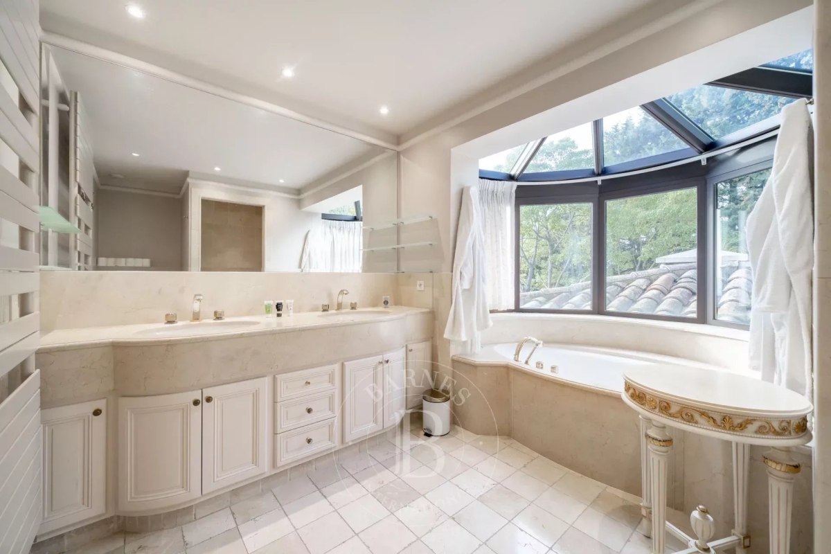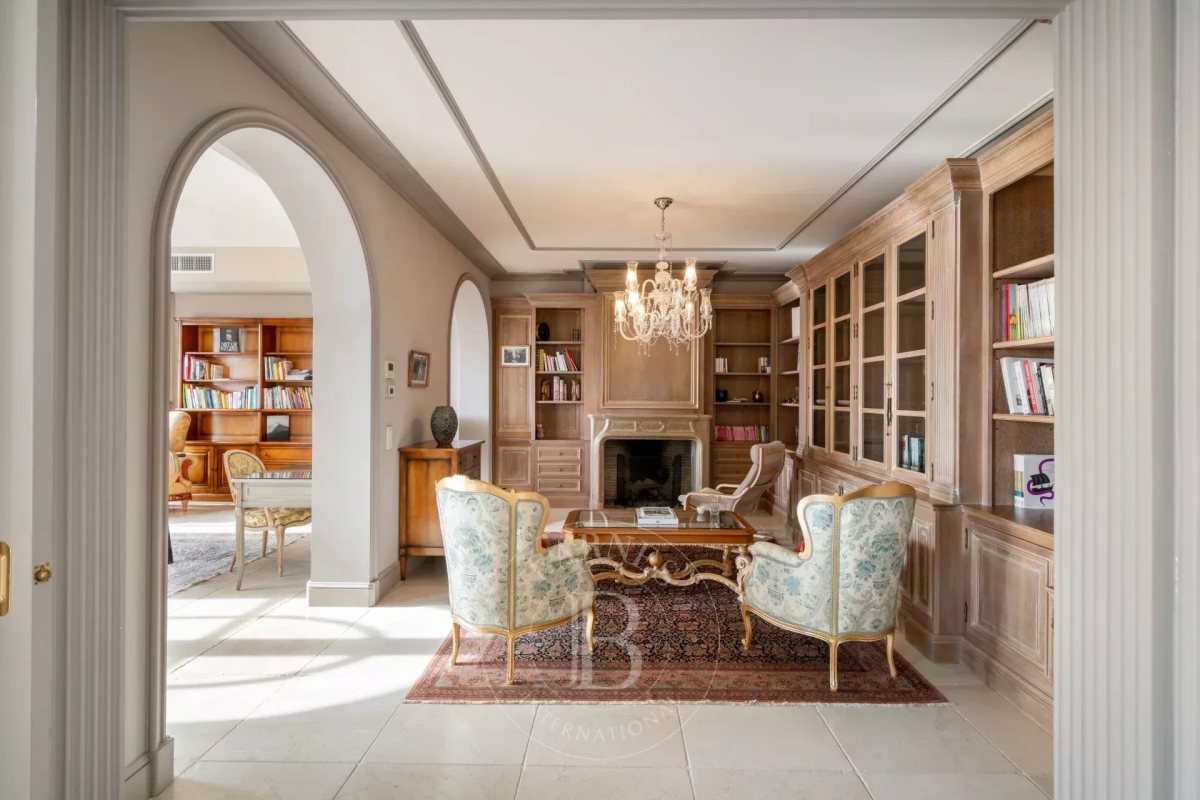 Située dans le prestigieux quartier de la Californie, cette villa néoprovençale offre une vue mer panoramique sur la baie de Cannes. Elle comprend un grand séjour avec salle à manger pour 8 invités, une cuisine américaine entièrement équipée, 4 chambres en suite, 2 chambres indépendantes, un studio annexe, un bureau, une salle de sport équipée ainsi qu'une salle de cinéma. Le jardin de plus de 4 000 m² est agrémenté d'une piscine au sel à débordement, 3 places de parking participe également à la constitution du bien.