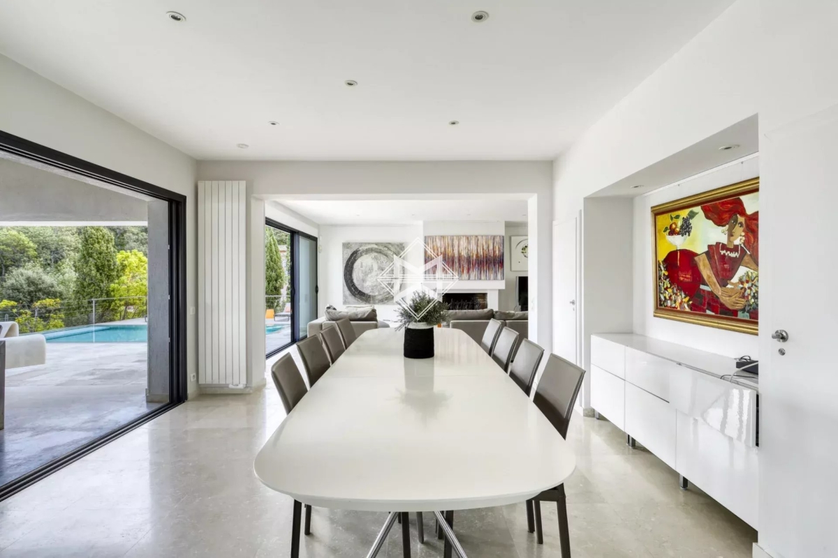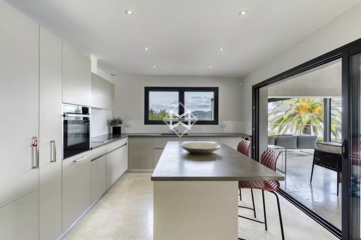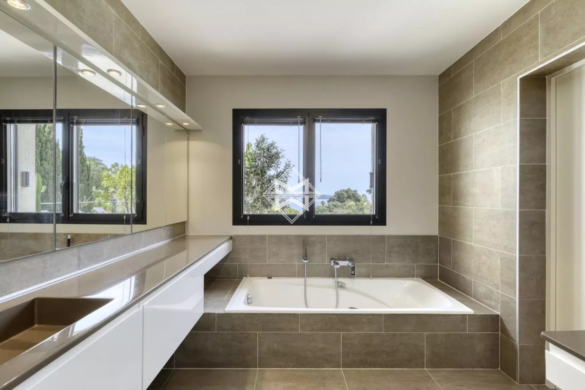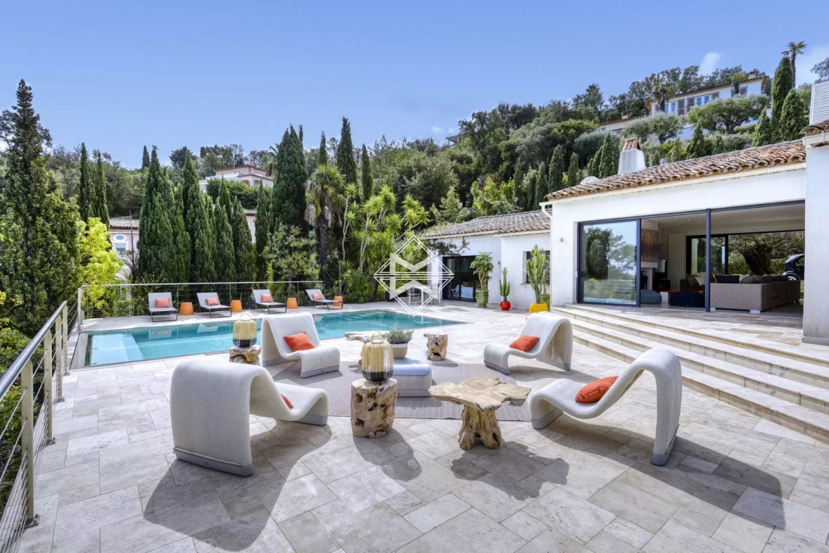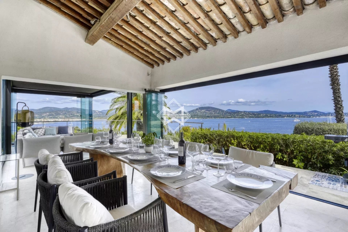 Dominant la baie, bénéficiant d'une exceptionnelle vue mer, villa d'architecture traditionnelle moderne d'environ 250 m2 édifiée sur un terrain paysager de 1880m2. La villa se compose d'un vaste salon, salle à manger et cuisine américaine ouvrant sur une terrasse couverte offrant un panorama exceptionnel sur la mer, 4 suites avec chacune leur salle de douches/bains. Piscine chauffée, climatisation, barbecue, système d'alarme. Numero d'agrément : 83065 000214SW