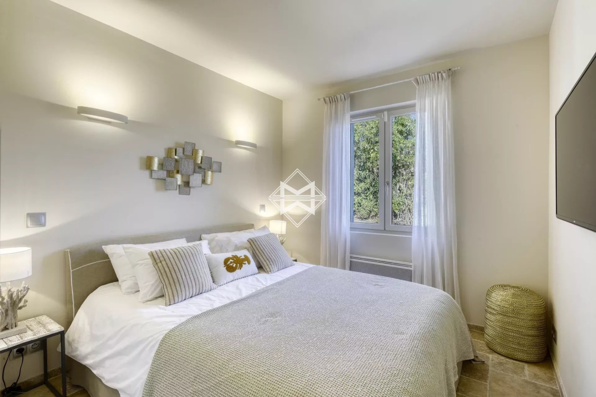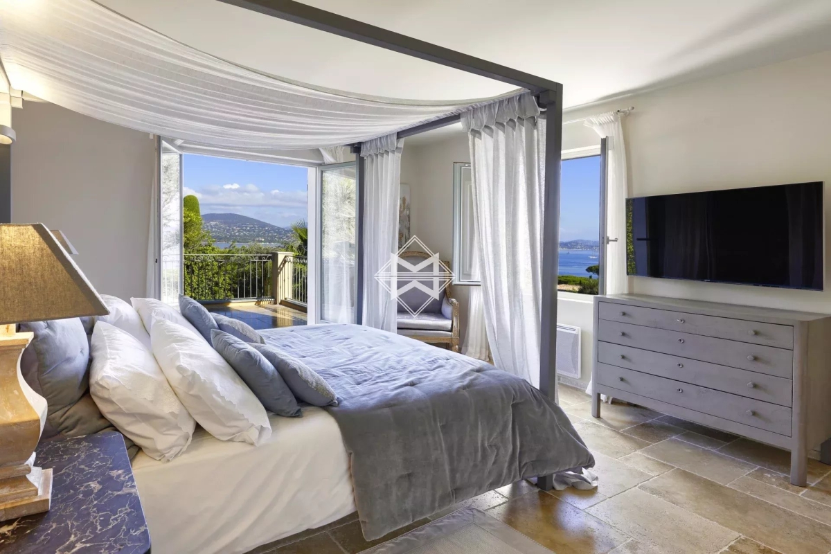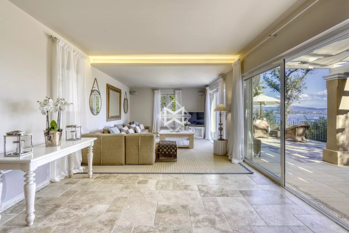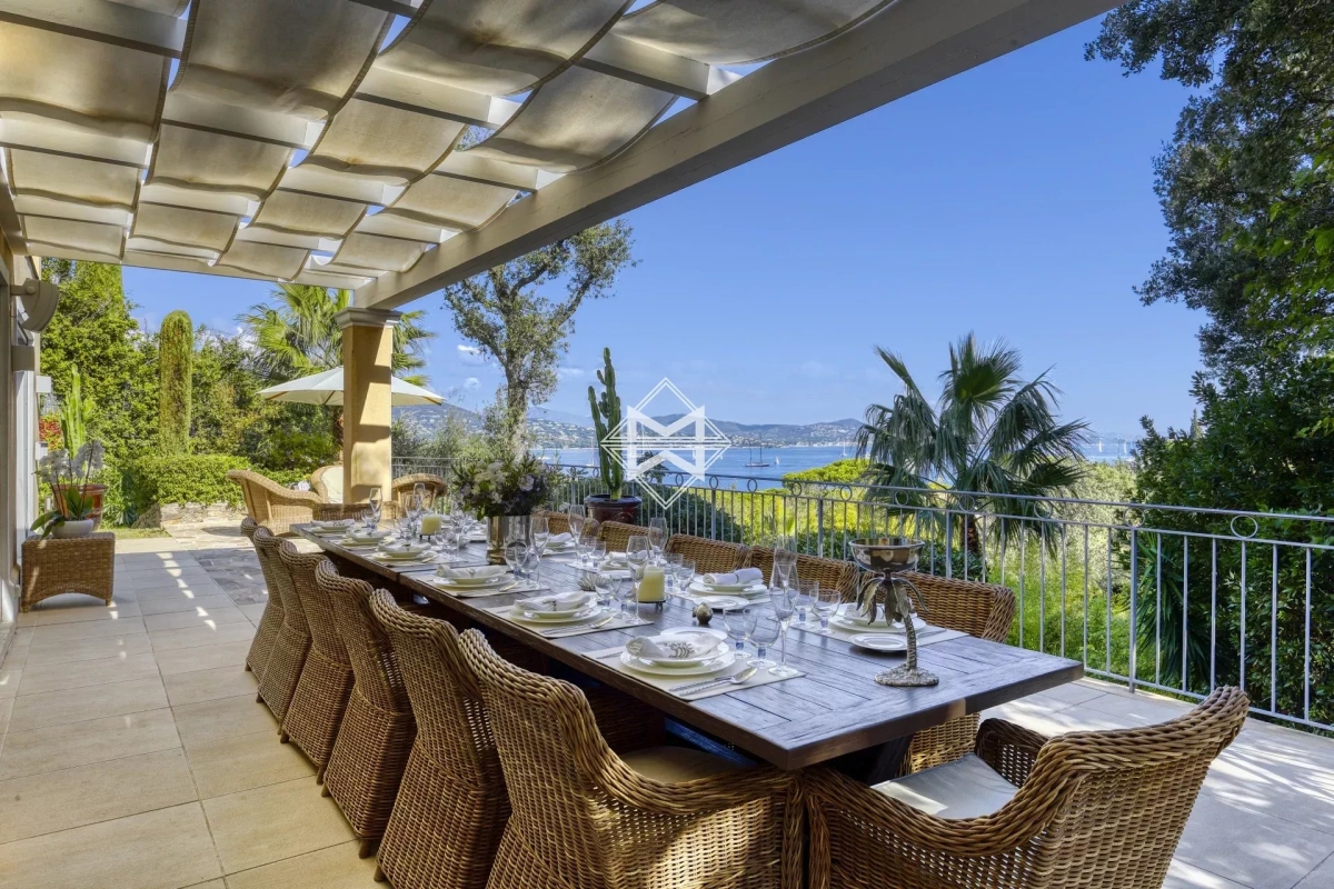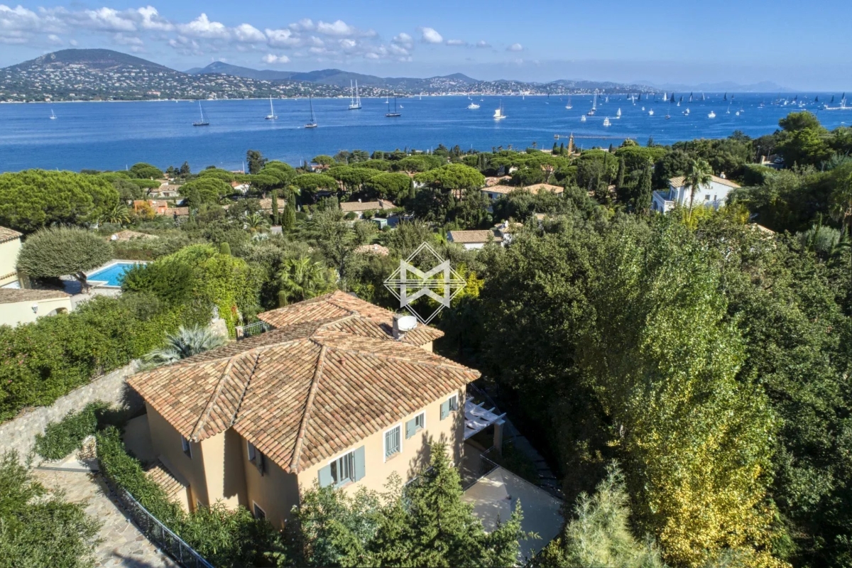 Idéalement située dans le prestigieux domaine de Sinopolis, une sublime villa d'environ 250m2 surplombant le golfe de Saint Tropez, édifiée sur un joli terrain paysager d'environ 1 490 m2. Cette villa dispose d'un chaleureux séjour ouvrant sur une magnifique terrasse avec vue sur la mer, ainsi que d'une cuisine parfaitement équipée. Elle dispose également de 5 chambre, dont 2 en suite, ainsi qu'une salle de douche et une salle de bain indépendante. Équipement: Piscine chauffé, jacuzzi, espace sport, équipement sonos, climatisation, internet, 1 place de parking au parking des Lices. Numero d'agrément : 83065000249LK