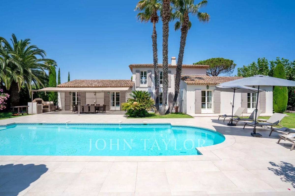 La villa est idéalement située entre le village de Saint-Tropez et les plages de Pampelonne elle comprend: Un bel espace de vie avec salon, salle à manger ouvrant sur une pergola ainsi qu' une cuisine équipée. 3 Chambres avec chacune une salle de douche, toilettes. A l'étage la chambre de Maitres dispose d'une salle de bain et douche. Le jardin dispose d'une piscine et d'un coin barbecue ainsi qu'un terrain de pétanque. Ce jardin est idéal pour les enfants. La villa est climatisée.