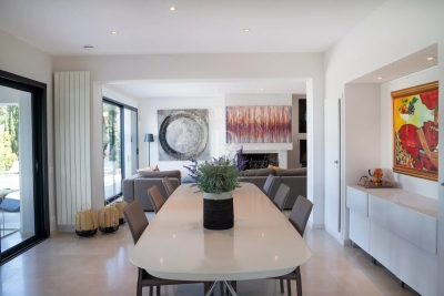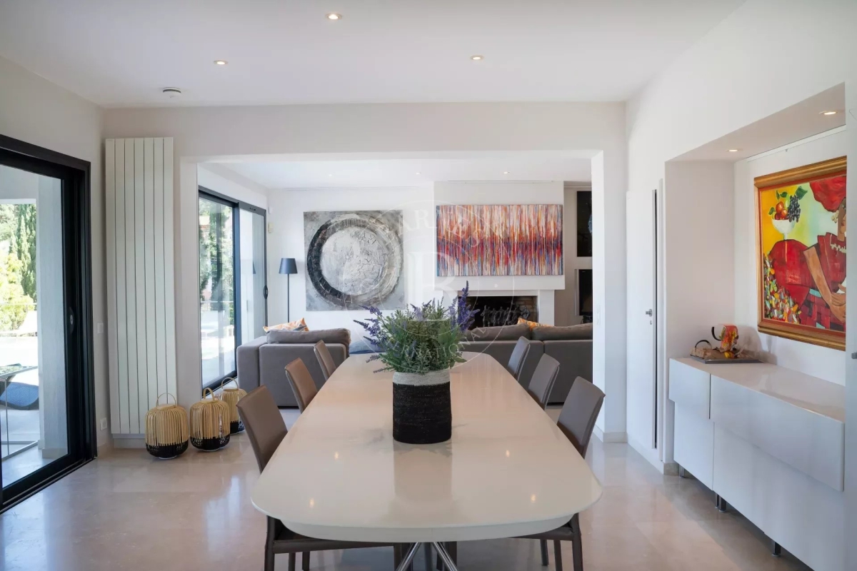 Cette villa de 250m² située sur les hauteurs de Gassin offre une vue panoramique sur le Golfe de Saint-Tropez. Entièrement rénovée avec des finitions de qualité, elle se compose d'un salon spacieux ainsi que d'une cuisine équipée ouverte sur la salle à manger, le tout bénéficiant d'une vue imprenable sur la mer. La villa compte quatre chambres avec salle de bain attenantes. L'extérieur de la villa offre un cadre paisible, avec une vaste piscine miroir offrant une vue panoramique à 180 degrés sur la mer, ainsi que deux grands salons spacieux. Services inclus : ménage régulier, linge de maison, linge de piscine et service conciergerie BARNES personnalisé Numéro de loueur meublé : « Les informations sur les risques auxquels ce bien est exposé sont disponibles sur le site Géorisques : www.georisques.gouv.fr » DPE en cours : Bien situé dans une zone soumise à l'obligation de débroussaillement. Contact: 0627996863.