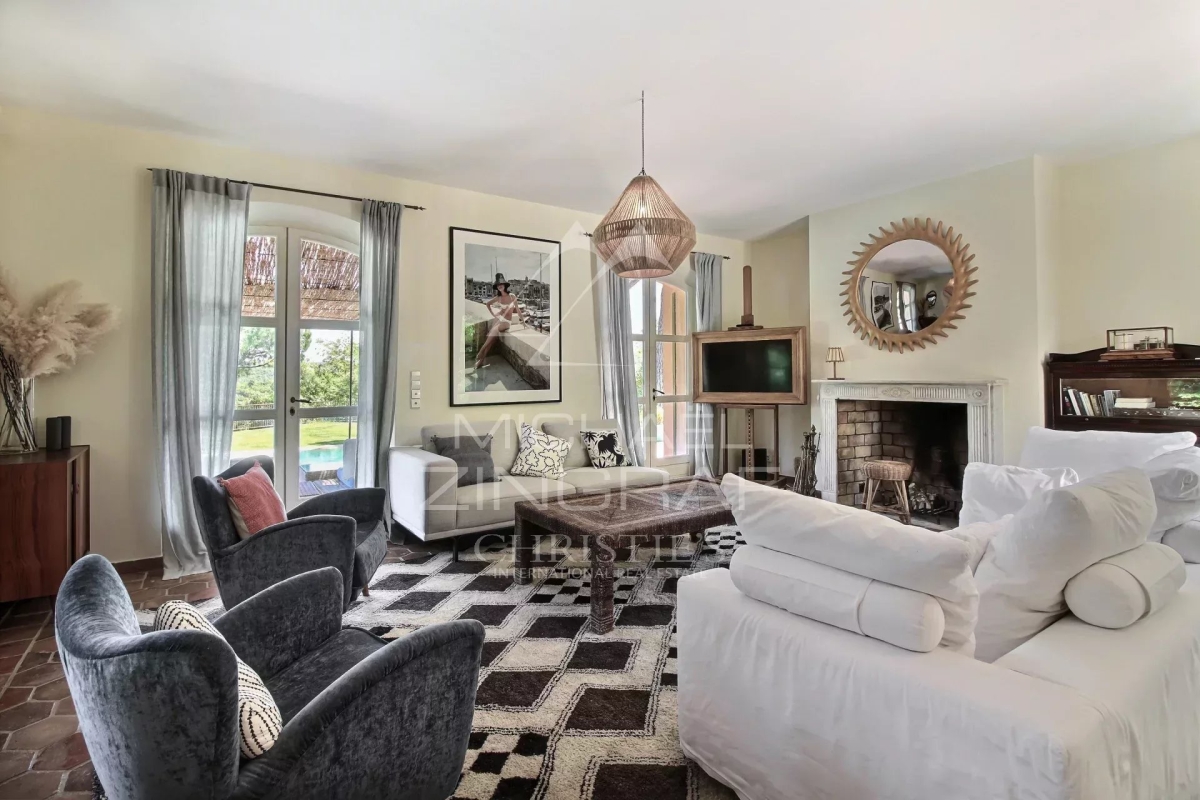 Découvrez cette villa provençale d'exception, nichée au cœur des vignes de Minuty, offrant un cadre de vie paisible et raffiné. Avec ses 300 m² de surface habitable, cette maison est parfaitement conçue pour profiter des plaisirs de la vie en plein air tout en étant à proximité des célèbres plages de Pampelonne et du village animé de Saint-Tropez. L'espace de vie est généreux et lumineux, comprenant un salon spacieux, une salle à manger conviviale et une cuisine entièrement équipée, La villa est entièrement climatisée, dispose de six chambres, chacune agrémentée de sa propre salle de bains et toilettes, garantissant intimité et confort pour tous vos invités. À l'extérieur, un terrain magnifique de 5000 m², soigneusement arboré, vous invite à la détente. Vous pourrez profiter de terrasses ensoleillées ainsi que d'une terrasse couverte, parfaites pour des repas en plein air. La propriété est également dotée d'une piscine chauffée, entourée de bains de soleil, et de charmantes fontaines, créant une atmosphère sereine et apaisante. Cette villa est l'escapade idéale pour ceux qui recherchent une vie de luxe au cœur de la nature, tout en étant à quelques minutes des attractions prisées de la Côte d'Azur. Numéro d'agrément : 83065 000010 UF