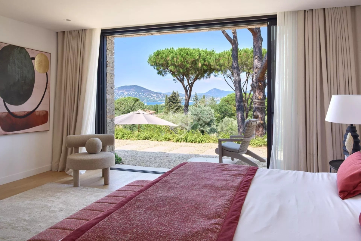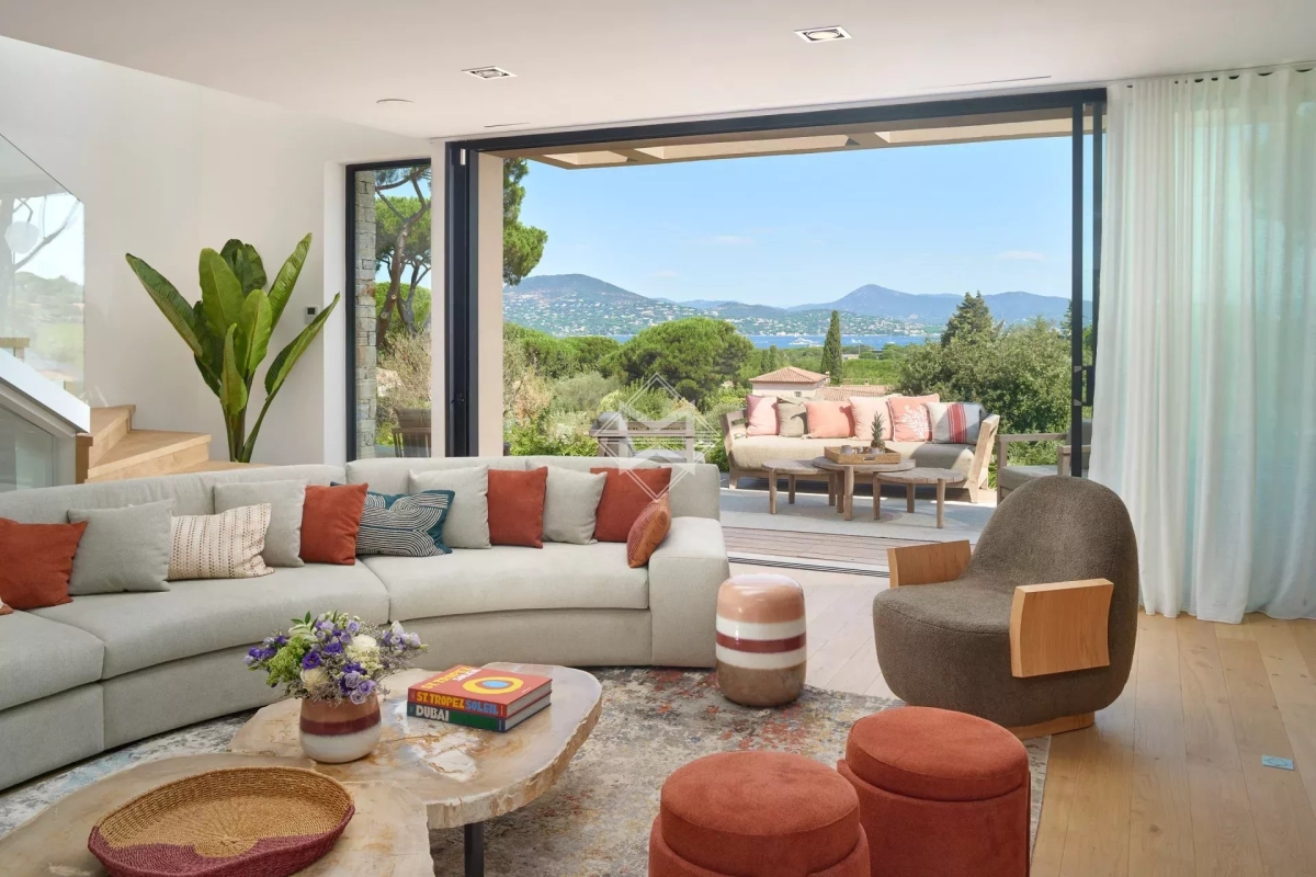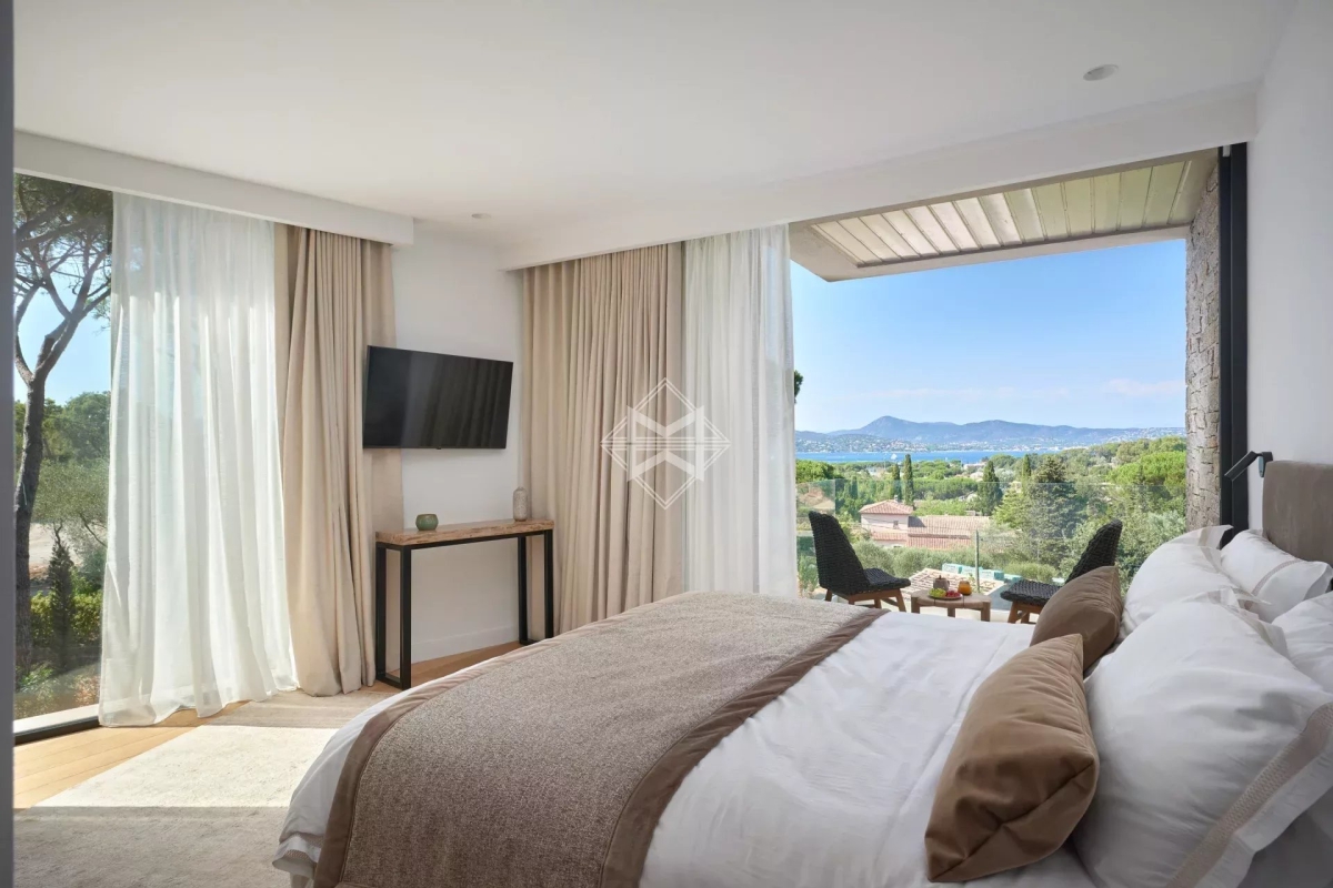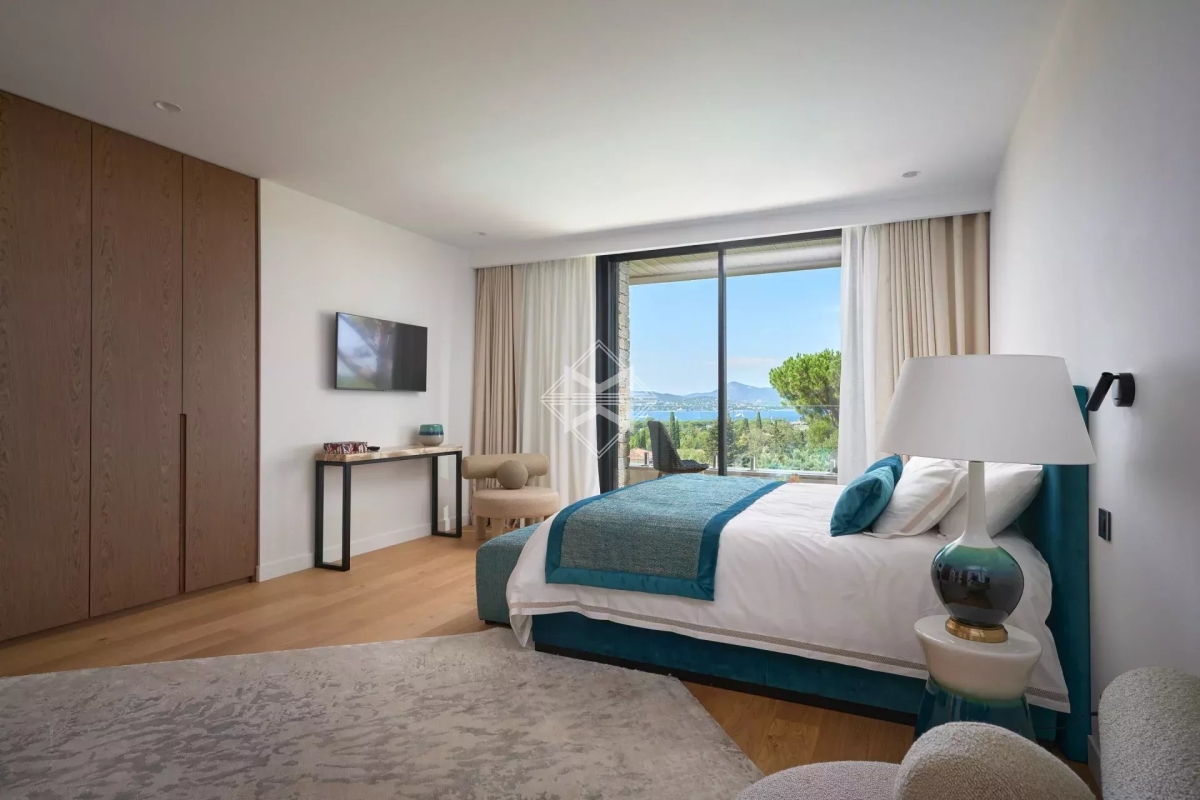 Située au calme, au sein d'un domaine privé et sécurisé composé de seulement trois villas, cette propriété contemporaine d'environ 500 m² offre une vue dégagée sur la mer exceptionnelle. Édifiée sur un magnifique terrain paysager d'environ 3 000 m², elle propose des prestations haut de gamme dans un cadre exclusif. La villa se compose de six suites, chacune avec sa propre salle de bains ou salle de douche, et bénéficie d'un agencement moderne et raffiné. L'atout charme majeur : les chambres disposent toutes de cette magnifique vue mer. Cette villa d'exception dispose d'équipements haut de gamme pensés pour offrir un cadre de vie alliant confort, bien-être et loisirs. À l'extérieur, une grande piscine chauffée s'intègre parfaitement dans le jardin paysager, idéale pour profiter des beaux jours en toute saison. Un boulodrome vient compléter cet espace convivial pour des moments de détente entre amis ou en famille. À l'intérieur, une salle de sport entièrement équipée permet de s'entraîner en toute tranquillité, tandis qu'une salle de massage et un sauna créent une véritable atmosphère de spa à domicile. Cette propriété réunit élégance architecturale, prestations de grande qualité et cadre naturel d'exception, offrant un art de vivre unique face à la mer, dans un environnement aussi exclusif que paisible.
