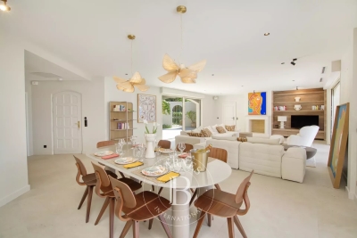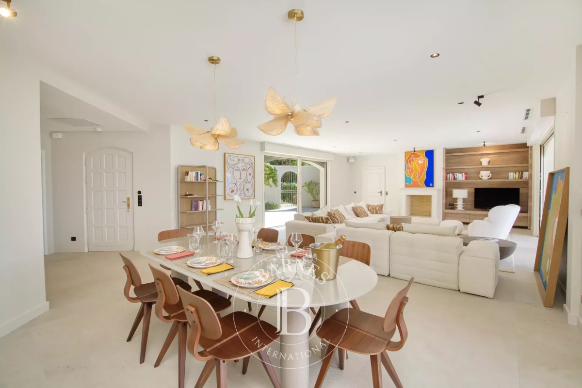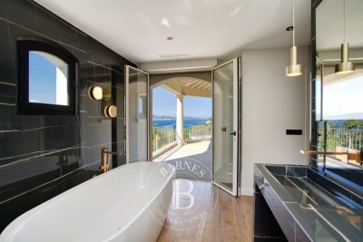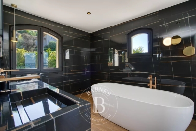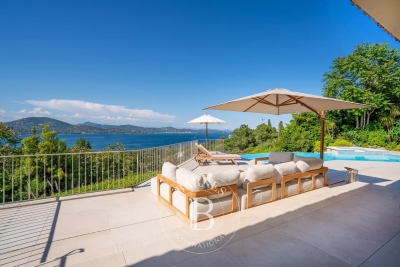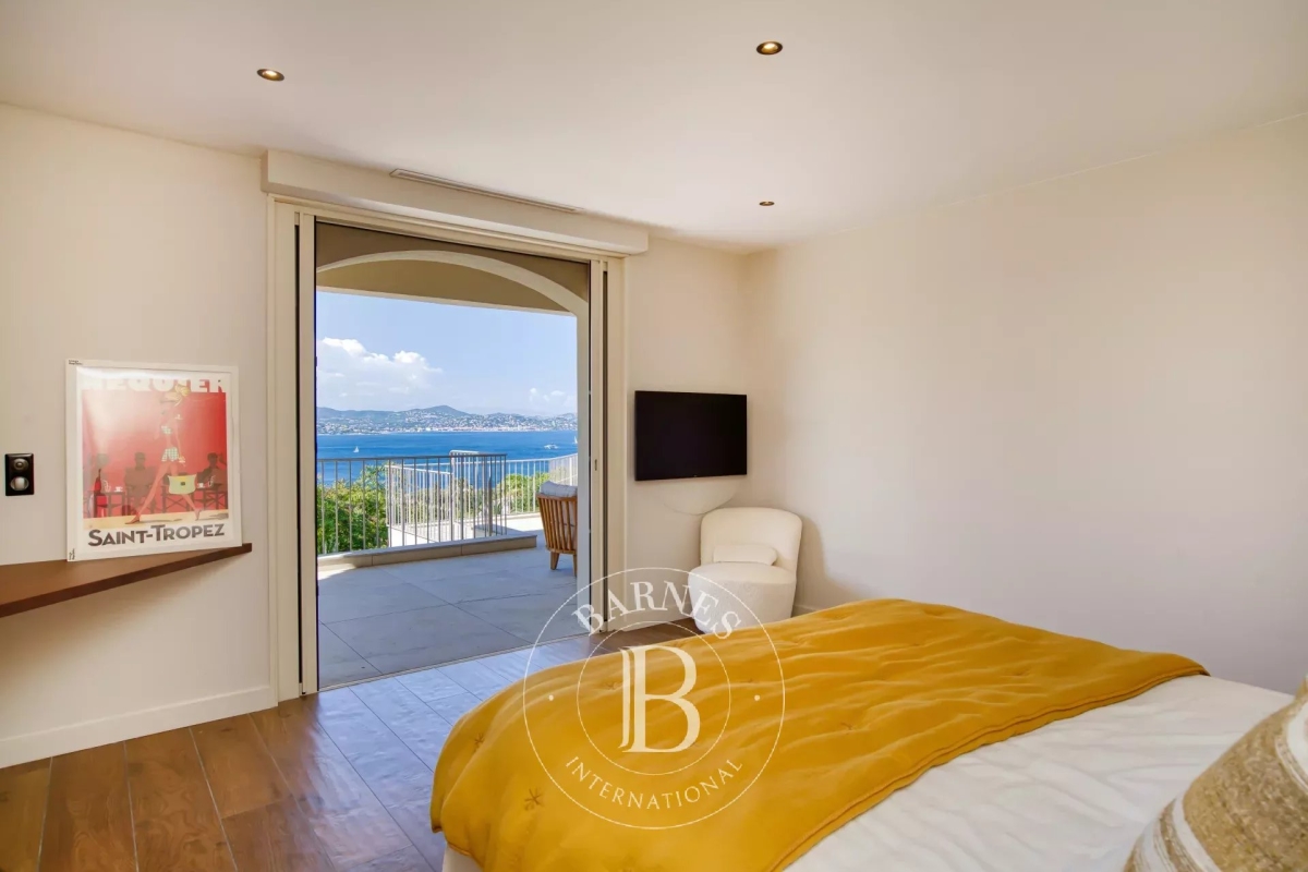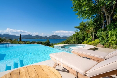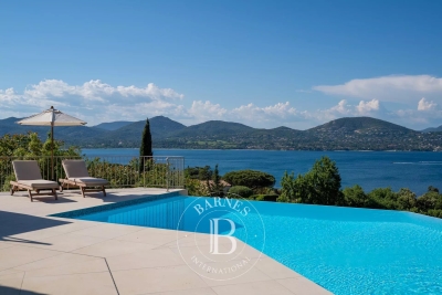 Située dans le prestigieux domaine privé de Sinopolis, cette villa entièrement rénovée de 350m² avec des prestations haut de gamme offre une vue panoramique sur le Golfe de Saint-Tropez. Aménagée sur deux niveaux et décorée avec élégance et convivialité, elle offre un hall d'entrée, un séjour lumineux traversant qui s'ouvre sur des terrasses de plain-pied menant à la piscine, une cuisine équipée, ainsi qu'une somptueuse suite parentale comprenant un dressing et une salle de bain. La villa dispose également de cinq chambres en suite. Le terrain, joliment arboré, se compose de nombreux espaces de détente, de plusieurs terrasses, d'une piscine à débordement ainsi que d'un jacuzzi. Services inclus : ménage régulier, linge de maison, linge de piscine et service conciergerie BARNES personnalisé Les informations sur les risques auxquels ce bien est exposé sont disponibles sur le site Géorisques : www.georisques.gouv.fr Contact: 0627996863.