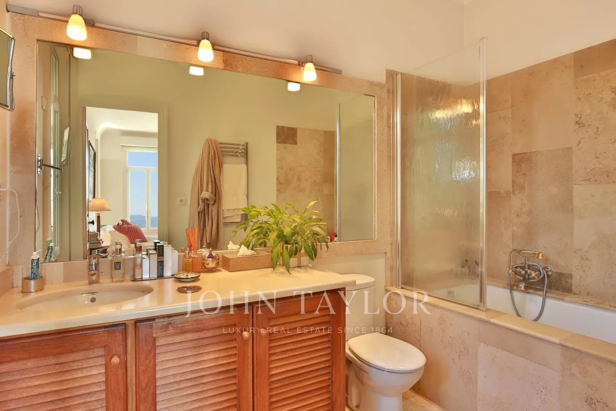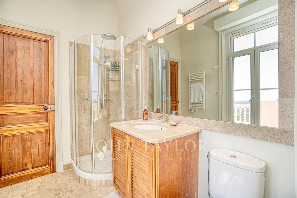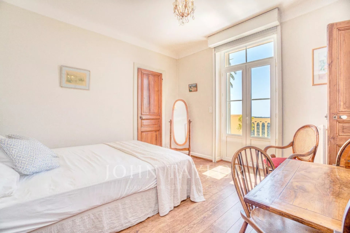 Magnifique propriété chargée d'histoire, en position dominante et offrant une vue à couper le souffle. La villa jouit d'un terrain de 3 000 m² environ avec jardin méditerranéen, pool house, piscine, salle de bains extérieure et cuisine d'été. Au rez-de-chaussée se trouve un grand salon, petit salon, un bureau, une cuisine, une salle à manger, une salle de sport, un patio et un accès à une spacieuse terrasse couverte avec ventilateurs au plafond. Au 1er étage, une chambre climatisée avec un lit de 180cm, salle de bains/WC, dressing et terrasse offrant une vue panoramique, une chambre avec un lit de 160cm et salle de douche/WC et accès terrasse et une chambre climatisée avec lit de 180cm et salle de bains/WC. Au 2ème étage, une chambre avec un lit de 160cm, une salle de bains avec baignoire, douche et WC, et une chambre enfants bénéficiant de quatre lits de 90cm. Un magnifique escalier en colimaçon desservant le 3ème étage, ou se situe une tour d'observation réservant une impressionnante vue 360° Une opportunité de découvrir une demeure historique construite par John Harjes et marquée par le passage de personnalités telles que Mary Cassatt, Germaine Tailleferre... Les informations sur les risques auxquels ce bien est exposé sont disponibles sur le site Géorisques : www.georisques.gouv.fr Contact: 0609238497.