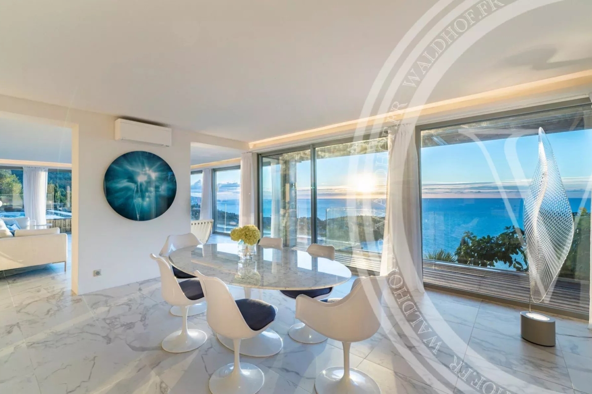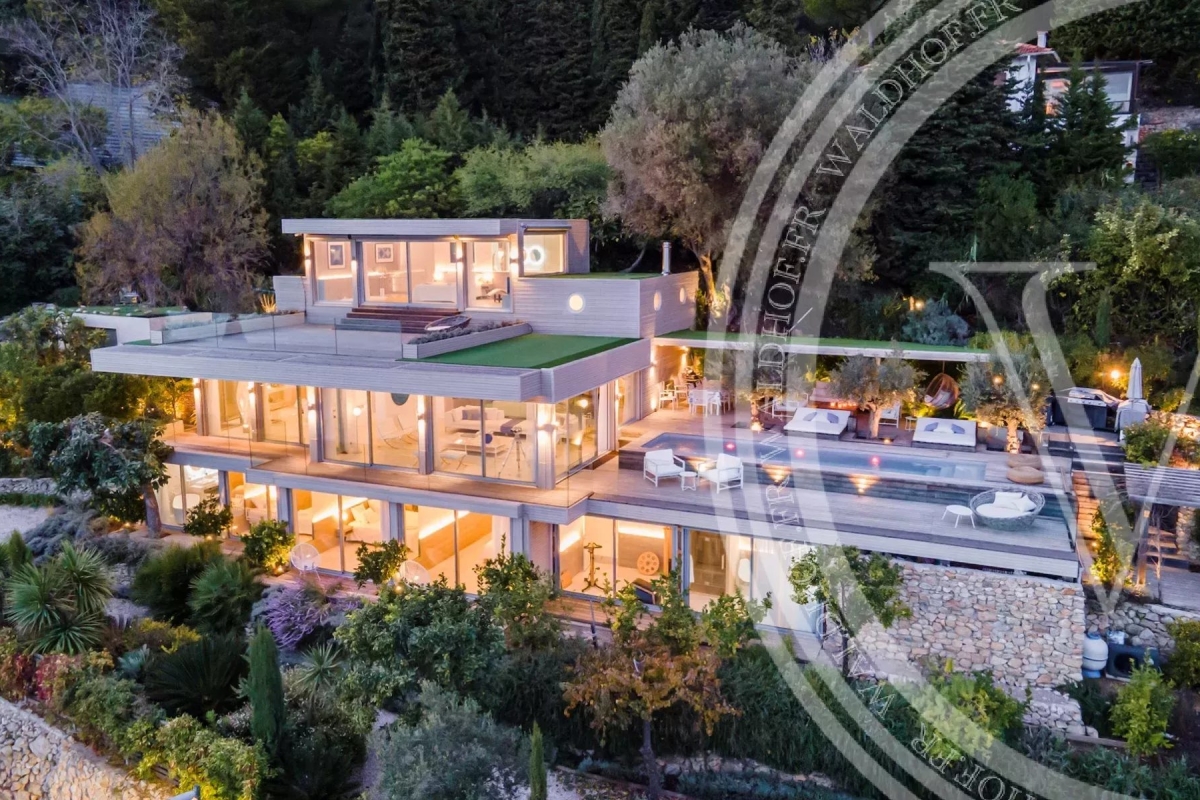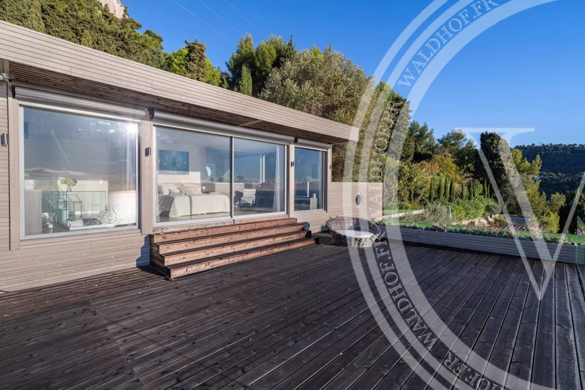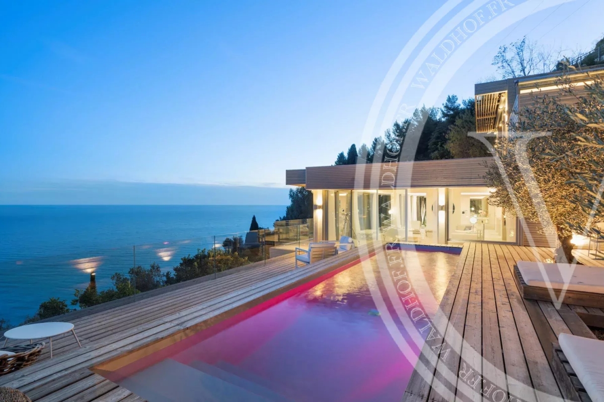 Bienvenue à l'exceptionnelle Villa Moana. Cette villa tout simplement sensationnelle est nichée dans la colline de Roquebrune Cap Martin, est nouvellement construite et offre certaines des vues sur la mer les plus époustouflantes de la Côte d'Azur. Avec son style moderne et ses finitions en bois chaleureuses, cette incroyable maison à flanc de colline est vraiment unique non seulement par son style mais aussi par son atmosphère qui vous accueille dès votre arrivée. Cette villa est le mélange parfait d'élégance, de design et d'architecture, ce qui en fait l'endroit idéal pour tout type de vacances. La villa dispose de 5 chambres, dont la chambre principale qui occupe tout l'étage supérieur et a été spécialement conçue pour offrir une vue panoramique depuis le lit et tous les coins de la pièce. Les suites d'invités bénéficient également de la vue sur la mer et de magnifiques salles de bains. La cuisine américaine high-tech mène au spacieux salon doté de baies vitrées pour une vue imprenable sur la mer. La terrasse principale est assez exceptionnelle avec sa piscine, de multiples lieux de détente et de restauration tout en étant entourée d'oliviers. Sous la terrasse principale se trouvent les incroyables jardins pleins d'agrumes/d'oliviers et d'amandiers qui vous transportent dans un autre monde de détente. Venez découvrir un autre niveau de luxe et d'élégance, Bienvenue à la Villa Moana Contact: +33621416539.