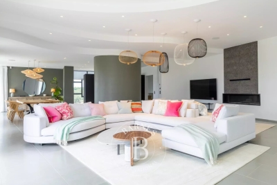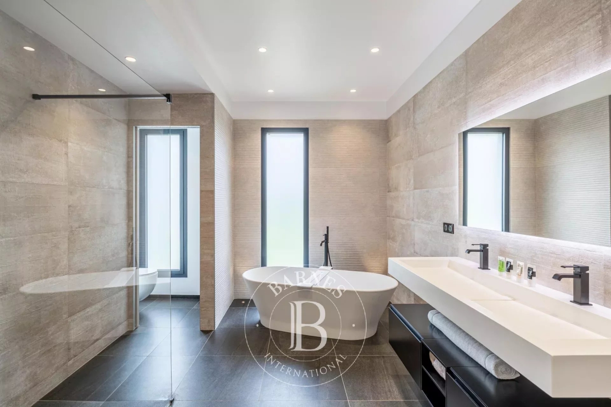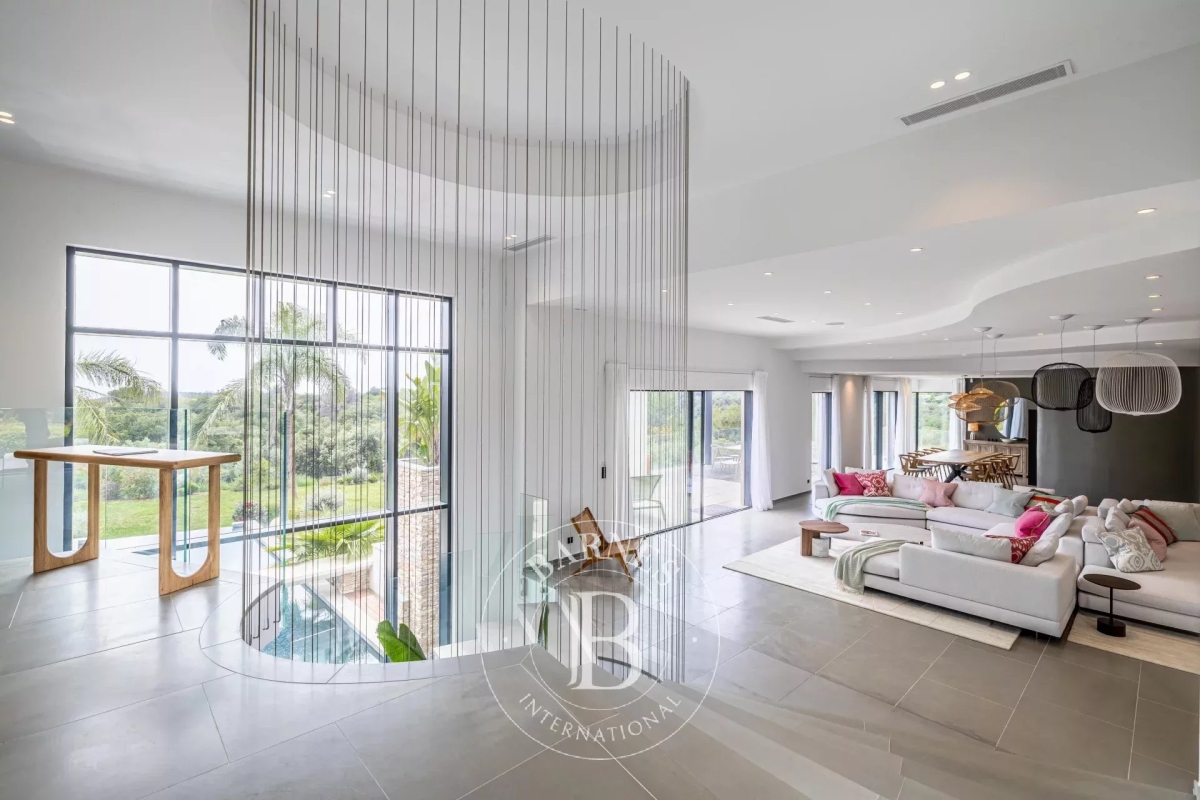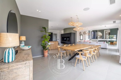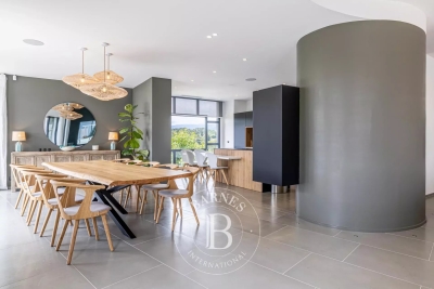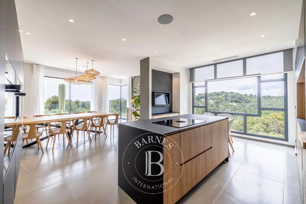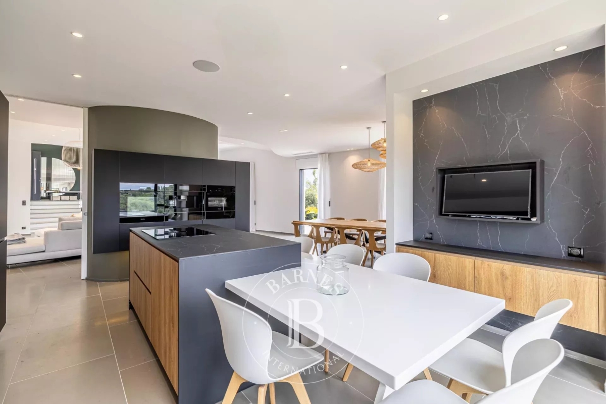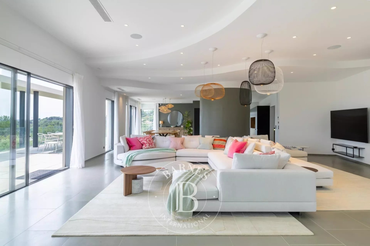 Cette somptueuse villa contemporaine de 650 m², à la vue panoramique jusqu'à la mer, s'étend sur un terrain plat et en restanque de 15 000 m². La villa dispose de 4 chambres en suite, d'une cuisine équipée, d'un vaste salon salle à manger lumineux et spacieux à la décoration chic et sobre. Un studio situé en rez de jardin, propose 2 chambres séparées par une salle de bain et une cuisine commune. La villa dispose également d'un bureau, d'une cuisine d'été ainsi qu'un hammam. Les espaces extérieurs offrent de larges terrasses, un jardin luxuriant, une piscine au sel de 15 m de longueur trône au centre de la propriété. Le parking peut accueillir 4 voitures. Un court de tennis, une aire de jeux et un terrain de football seront ajoutés d'ici l'été 2025. La localisation de la propriété offre une tranquillité absolue, tout en étant à seulement 10 minutes du village de Roquefort-les-Pins, et 20 mn des plages du littoral. Idéale pour des vacances en famille ou entre amis. Claire CALLAWAY - Agent commercial - EI - RSAC 514608546