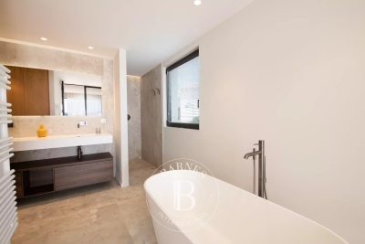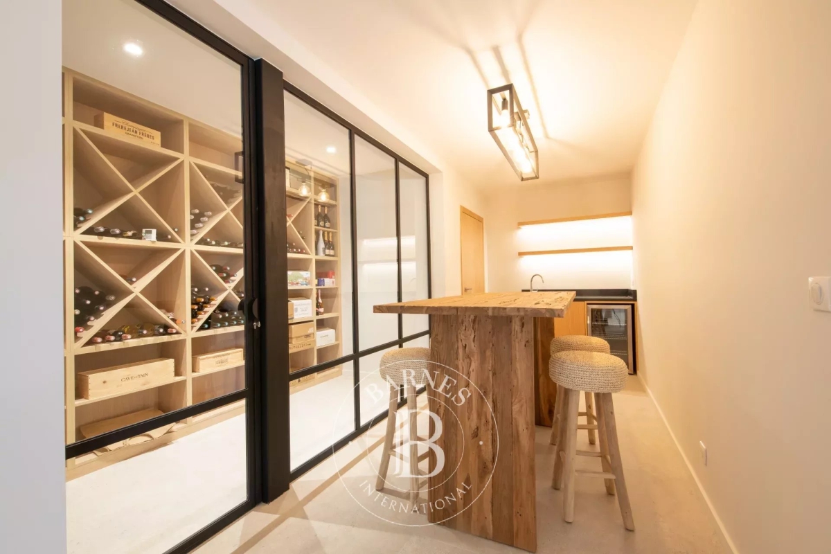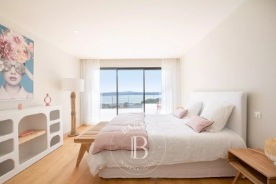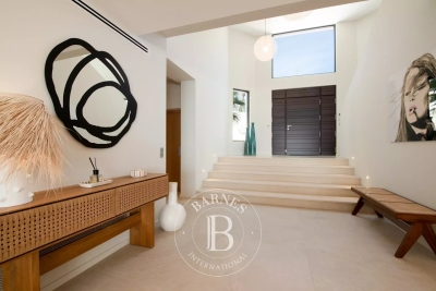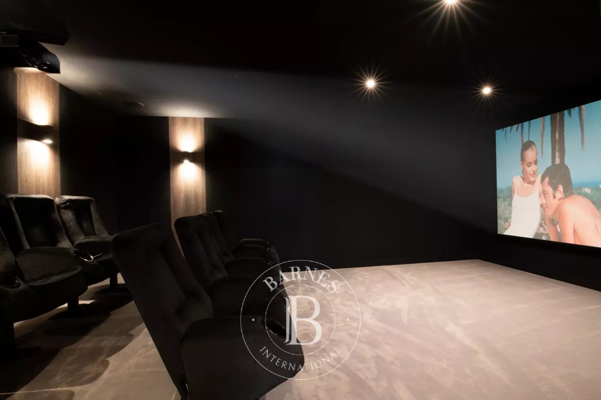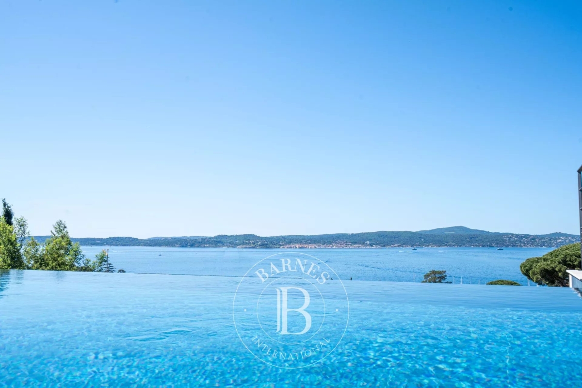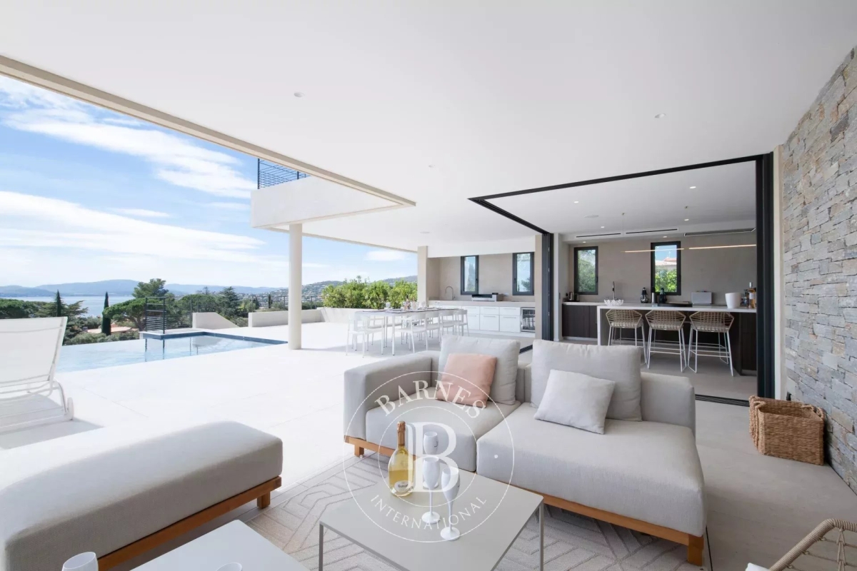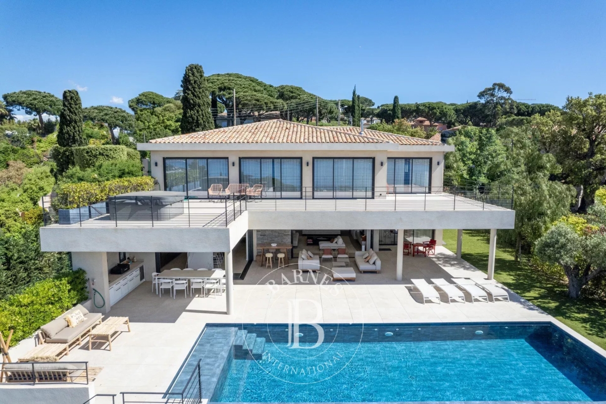 * Villa California * Située dans un environnement calme et résidentiel, à proximité du centre-ville, cette propriété neuve et contemporaine d'environ 450 m² offre une vue panoramique sur la mer et le Golfe de Saint-Tropez. Au rez-de-chaussée, une pièce de vie spacieuse et lumineuse avec salon et salle à manger, une cuisine entièrement équipée avec son arrière-cuisine, une buanderie ainsi qu'une chambre en suite avec son dressing, sa salle de douche et son accès à la terrasse. A l'étage, quatre chambres en suite avec chacune son dressing, sa salle d'eau et son accès à une grande terrasse équipée d'un jacuzzi. Une chambre supplémentaire avec placard vient compléter l'étage. Au sous-sol, une cave à vins, un espace fitness équipée d'une télévision (vélo d'intérieur, tapis de course et vélo elliptique), une salle de cinéma, une chambre froide ainsi qu'un studio attenant avec un lit double, une salle de douche et un dressing. En extérieur, de larges terrasses aménagées, un jacuzzi, une piscine à débordement chauffée (sur demande et en supplément), une cuisine d'été équipée d'une plancha et d'une cave à vins, un terrain de pétanque, une douche, un garage pour quatre voitures avec une borne de recharge électrique ainsi qu'un accès piéton pour rejoindre le centre-ville et les plages. Équipements : Climatisation dans toute la propriété, système d'alarme et de vidéo-surveillance, équipement SONOS, places de parking, ascenseur et paddle à disposition. Service inclus : Ménage, linge de maison et service de conciergerie BARNES personnalisé. Numéro d'enregistrement N*83115004829WF