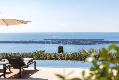 Cette magnifique villa de 450² environ, à la rénovation très moderne, sur trois niveaux, propose un très grand séjour/cuisine lumineux doté d'une vue panoramique sur la mer et donnant sur un grand jardin avec piscine chauffée 13x4. Quatre chambres en suite dont une master, un studio séparé, une salle de sport, une salle de cinéma, un terrain de jeux. Située sur un terrain de 2000 m² environ. N de déclaration: 06155412025BO