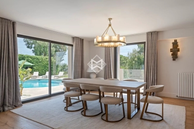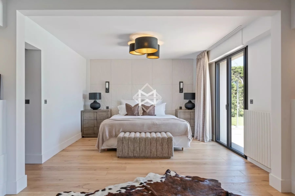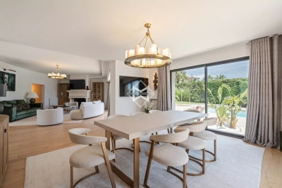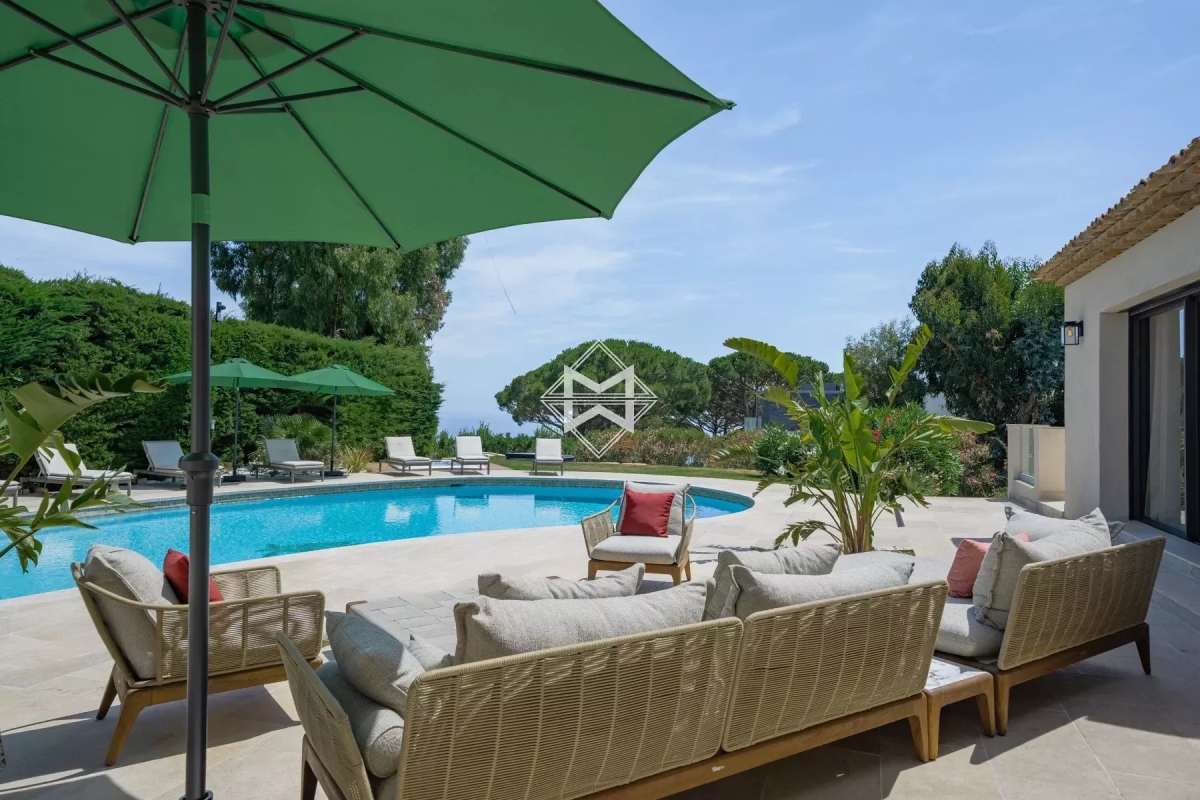 Située dans le prestigieux secteur de Super Cannes, cette élégante villa de près de 416 m² est érigée sur un terrain spacieux de 3 100 m². Nichée en hauteur dans un environnement calme et résidentiel, elle offre une vue dégagée et une tranquillité rare tout en étant à seulement 15 minutes du centre-ville de Cannes. La propriété se distingue par ses prestations exceptionnelles, incluant un terrain de tennis privé et une grande piscine, parfaits pour profiter du climat méditerranéen. Les intérieurs, aménagés avec des matériaux de qualité, allient confort et raffinement. Elle se compose suit : AU REZ-DE-JARDIN : - Une cuisine entièrement équipée avec cave à vin - Un salon salle à manger ouvert sur l'extérieur - Chambre 1 : suite d'invités avec lit de 160cm, TV, salle de douches, WC, douchette, placards, le tout ouvert sur la terrasse - Un WC invités avec douchette - Chambre 2 : suite de Maîtres avec lit de 2m, salle de bains et douches, WC, douchette, vaste dressing, grande TV, le tout donnant sur la piscine et la vue mer - Chambre 3 : suite d'invités avec lit de 180cm, salle de douches, WC, douchette, dressing, accès extérieur AU REZ-DE-CHAUSSEE : - Une salle de cinéma donnant accès au bar fumoir et cave - Chambre 4 : suite d'invités avec lit de 180cm, salle de douches, WC, douchette, placard, TV - Chambre 5 : suite d'invités avec lit de 180cm pouvant être séparés, placard, hammam douche, WC avec accès extérieur - Une 6ème chambre sur demande avec lit de 180cm en fonction de la salle de sport TV, douche, WC, placard - Un studio avec canapé lit de 140cm, kitchenette, placard, TV, douche, WC. EXTERIEURS : - Un garage - Une piscine avec douche extérieur - Une cuisine d'été avec barbecue - Un jacuzzi - Un terrain de tennis 16m de large surface de jeu 11m Longueur de jeu 24m de long Estelle FACCHINETTI - Agent commercial - EI - RSAC 87862822