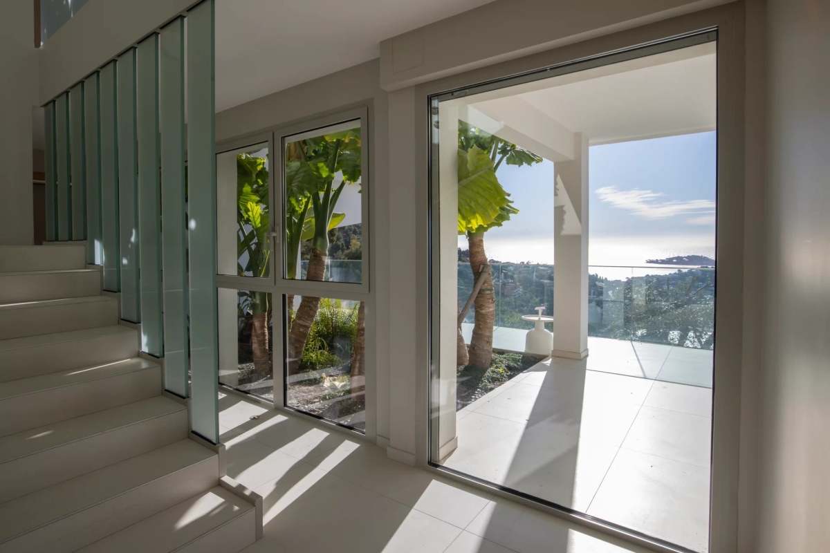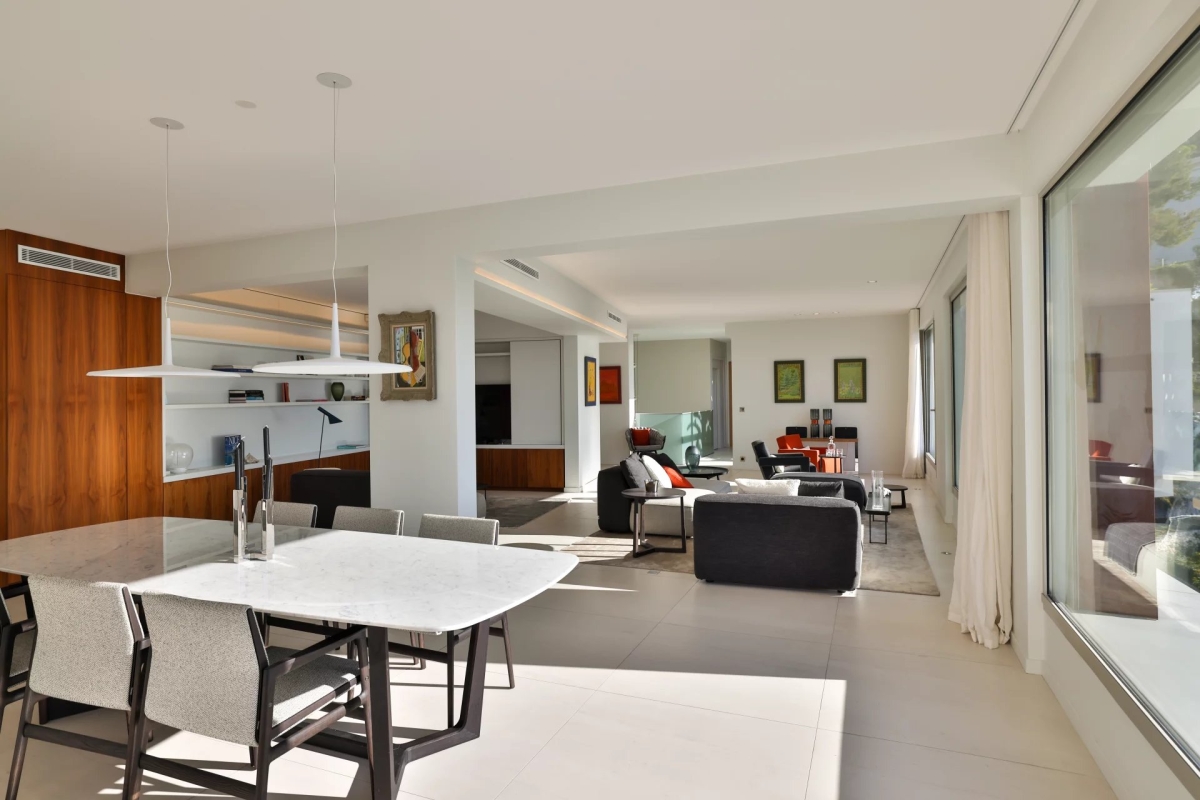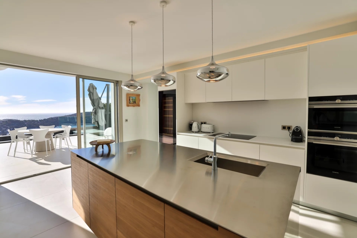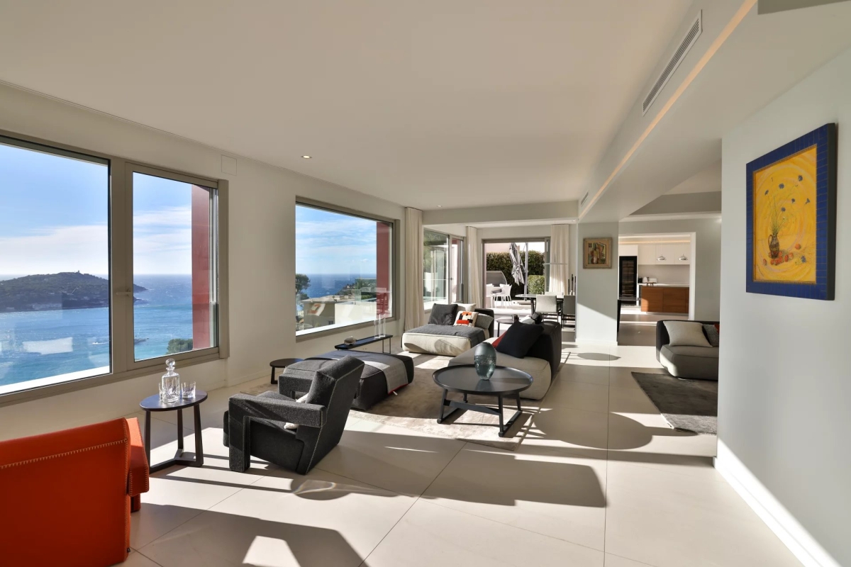 Au cœur d'un domaine privé, cette somptueuse villa contemporaine allie à la perfection luxe et confort. Avec une superficie de 440m², elle peut accueillir jusqu'à 10 invités dans ses 5 chambres, ainsi que 4 personnes supplémentaires dans son appartement indépendant. Dès l'entrée, vous serez charmés par un vaste espace de vie ouvert, baigné de lumière naturelle et décoré avec un goût raffiné. Chaque pièce offre une vue imprenable sur la mer, créant une ambiance sereine et apaisante. Les prestations incluent un espace de détente et de massage, un hammam, un jacuzzi et une piscine extérieure chauffée, tous conçus pour offrir un confort ultime. Rez-De-Chaussée -Entrée -Double salon ouvrant sur une terrasse vue mer -Salle à manger -Cuisine équipée ouvrant sur une terrasse vue mer -Arrière-cuisine -Terrasse vue mer avec jacuzzi -Chambre 1 : Master en suite (lit180cm) avec toilette indépendant, dressing, espace salon ouvrant sur une terrasse privative vue mer-salle de bain douche ouvrant sur une terrasse privative. Niveau 1 -Chambre 2 : master junior en suite (lit 160cm) avec un toilette indépendant,placard de rangement, une salle de bain douche et ouvrant sur une terrasse vue mer -Toilette invité -Chambre 3 : en suite (lit 160cm) dotée d'une salle de douche toilette et ouvrant sur une terrasse vue mer -Toilette -Chambre 4 (lit 160cm) dotée d'une salle de douche et ouvrant sur une terrasse vue mer -Studio indépendant accessible en descendant quelques marches de l'escalier extérieur : dotée d'un canapé convertible 140cm, il dispose d'une chambre en suite avec salle de douche toilette, une salle à manger et une cuisine équipée et dispose d'une belle vue mer Rez De Jardin -Salle de massage -Hammam avec ciel étoile -Douche -Toilette -Buanderie Prestations supplémentaires : vidéo surveillance, alarme, domotique, internet fibre, bbq, ascenseur, coffre fort, climatisation réversible Contact: +33781475525.